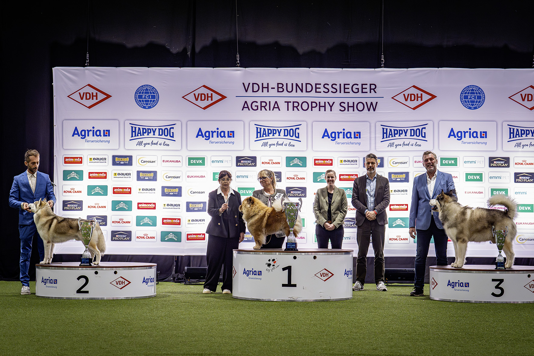 Greata erreicht im Finale des German Dog of the Year den sechsten Platz. Ein tolles Ergebnis und das beste, welches ein Chow Chow jemals in diesem Wettbewerb erringen konnte. Die ersten sechs Plätze wurden am Samstag im Rahmen eines festlichen Dinners vergeben. Für uns war das ein sehr schönes Erlebnis, was aber dazu führte, dass wir erst um Mitternacht wieder zuhause waren. Alles in allem war es sehr anstrengend, weil wir am nächsten Morgen um sechs schon wieder auf die Piste mussten, um an der Agria Trophy teilnehmen zu können. Unsere Schätze Isa und Greata haben sich den Richtern wieder einmal toll präsentiert und konnten voll überzeugen. Zum Abschluss des Wochenendes erreichte Greata am Sonntag im Ehrenring zusätzlich den Sieg in der Gruppe Fünf. Es war ein tolles Wochenende mit viel Wartezeit und großen Erfolgen für unser Team. Wir sind stolz und glücklich.