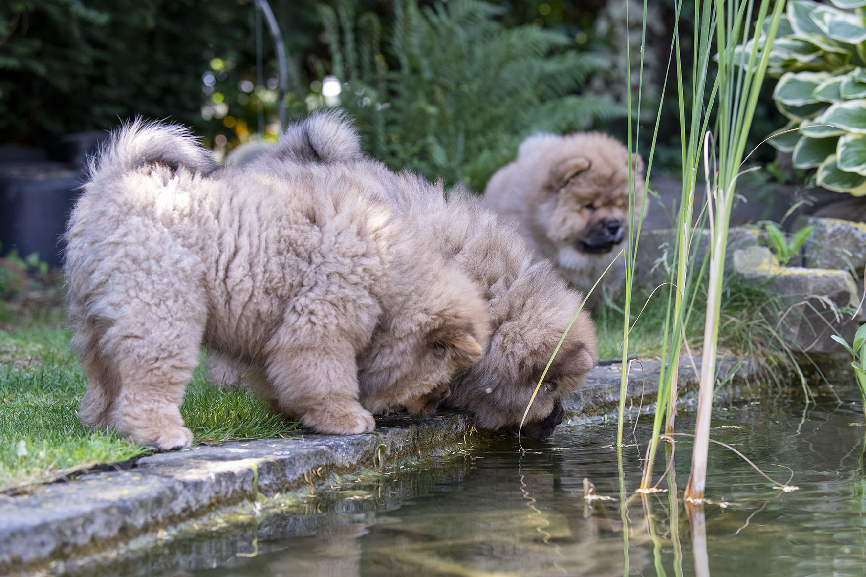 Am Sonntag, dem 29.10.2023, fand das E-/F-Wurf-Welpentreffen bei den Familienchows us Wässel de Ling statt. Weil sie quasi um die Ecke wohnen, waren auch Goldy und Grace us Wässel de Ling mit von der Partie.