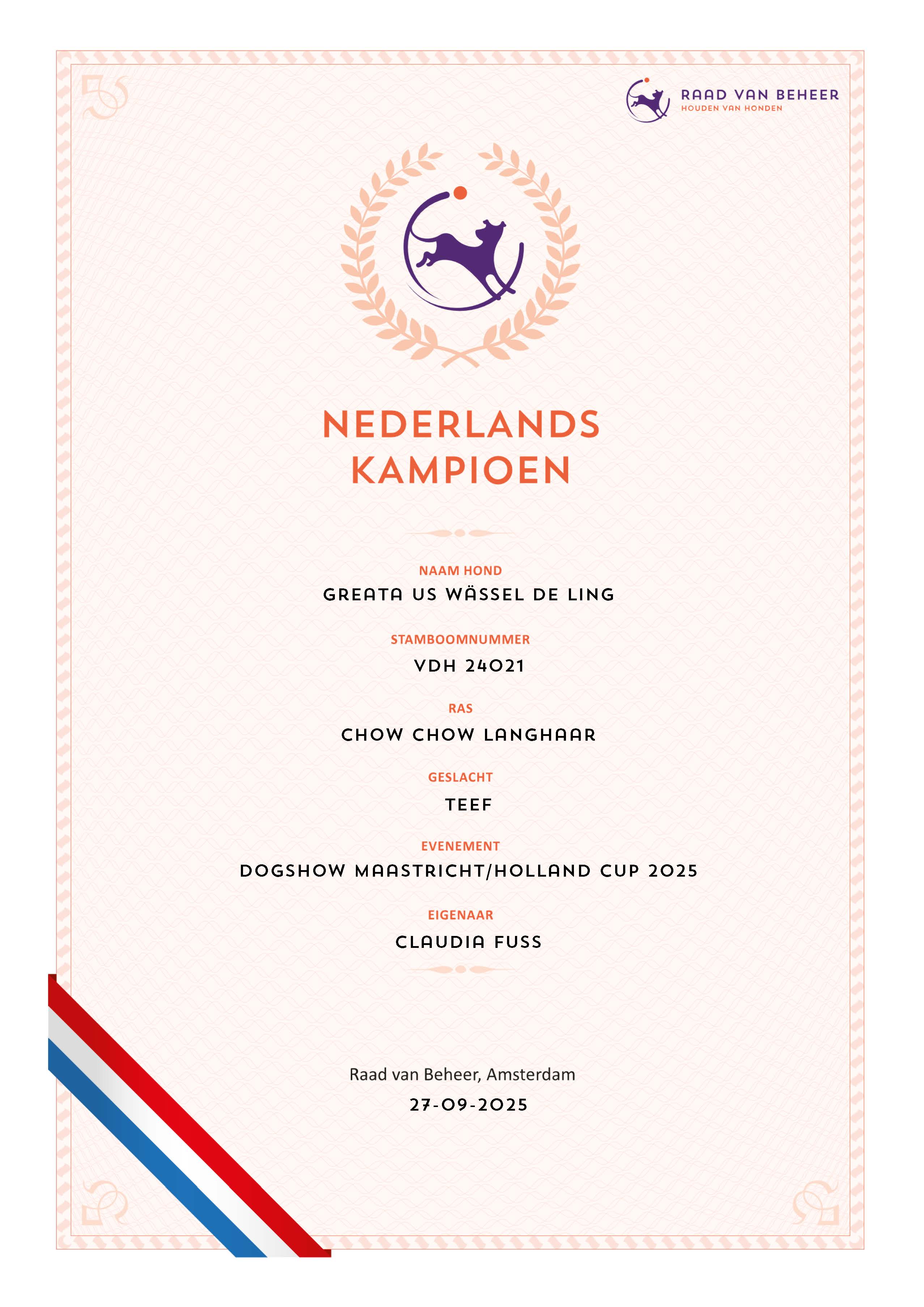 Mit diesen Ergebnissen haben Isa und Greata alle Anwartschaften für den niederländischen Veteranenchampion bzw. den niederländischen Champion erreicht. Die Beantragung läuft.