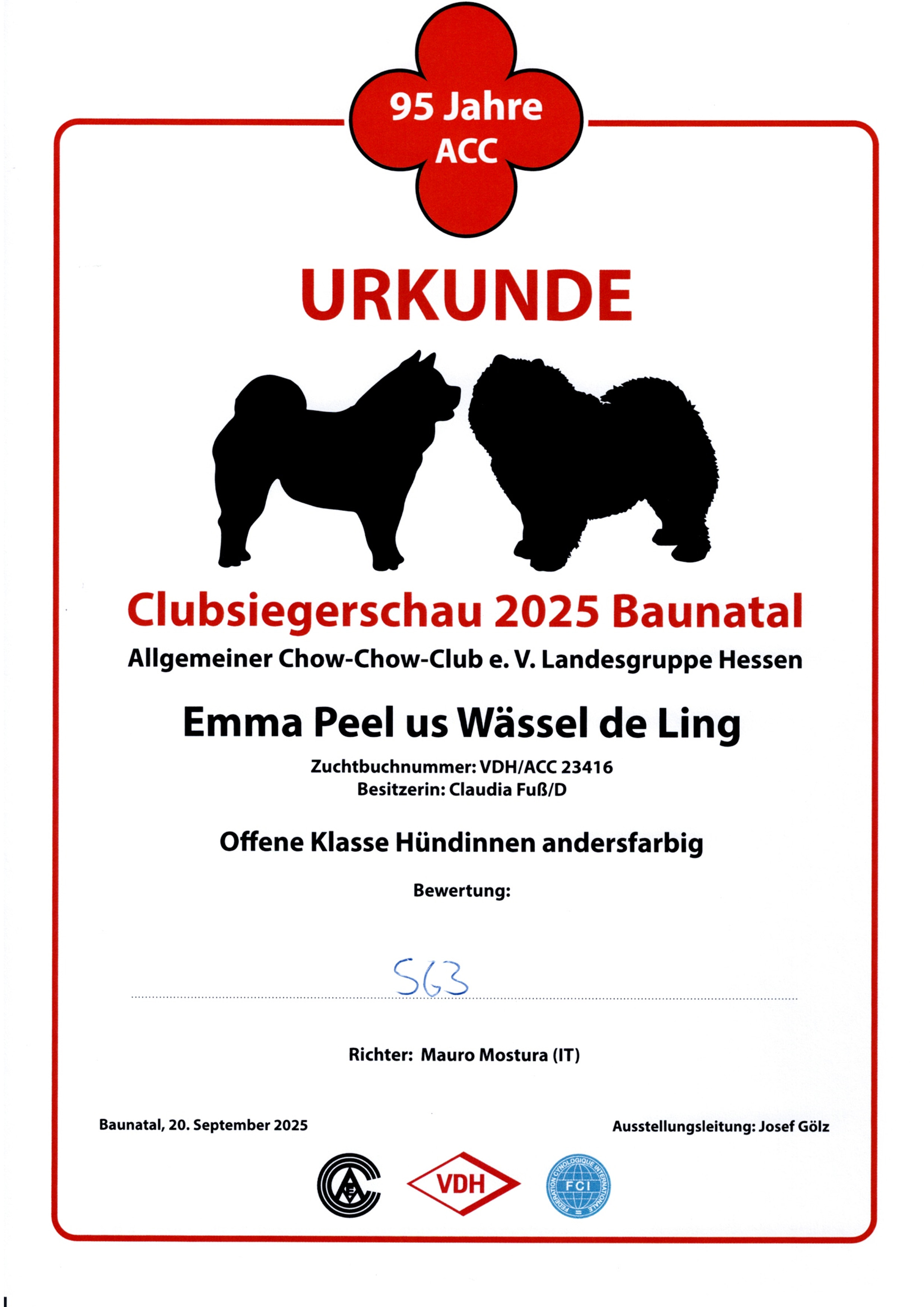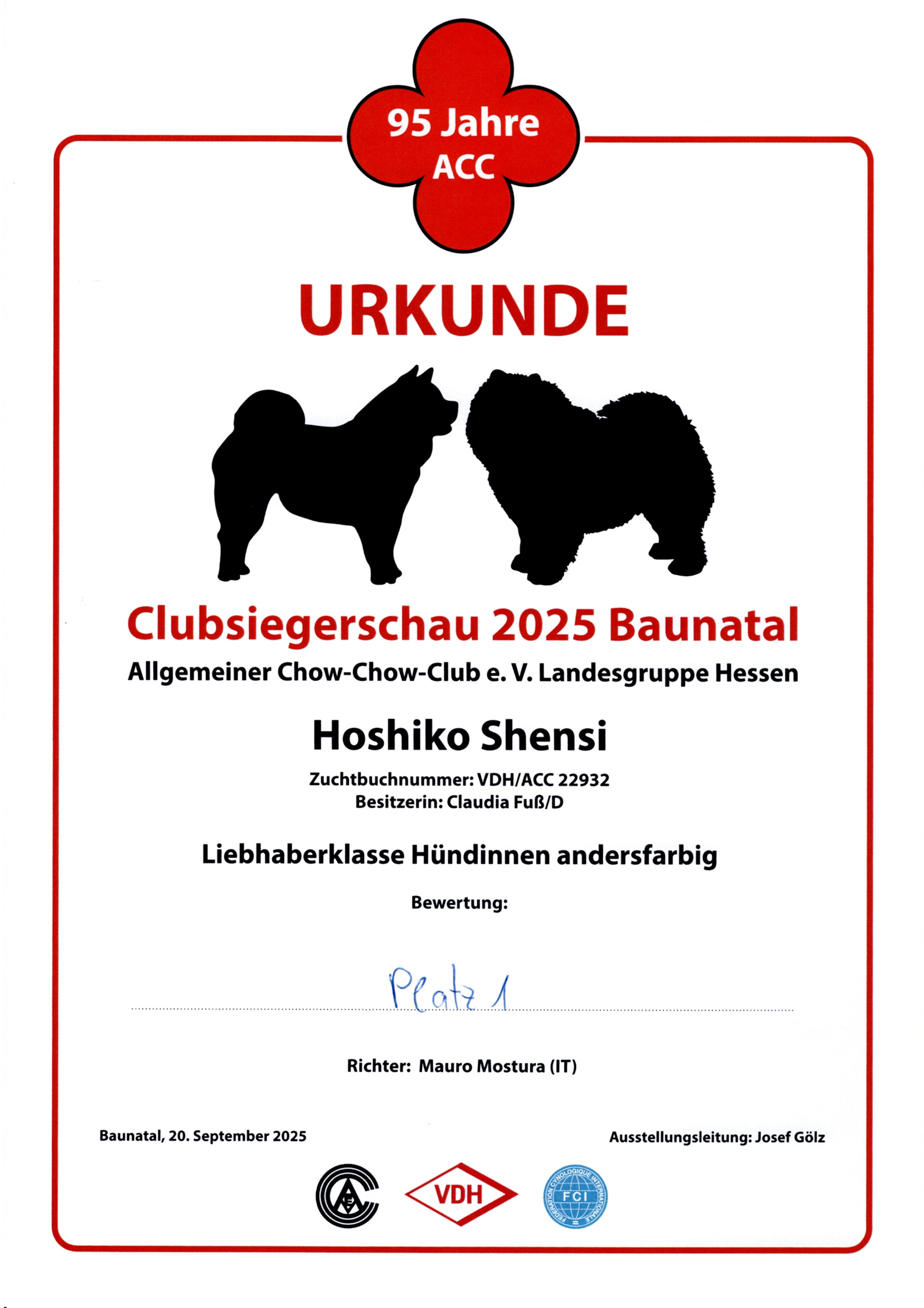 V1, erhielt das Club CAC , die Anw. Dt. Vet. Ch. VDH, und wurde Clubsiegerin, BOS und Hessensiegerin.