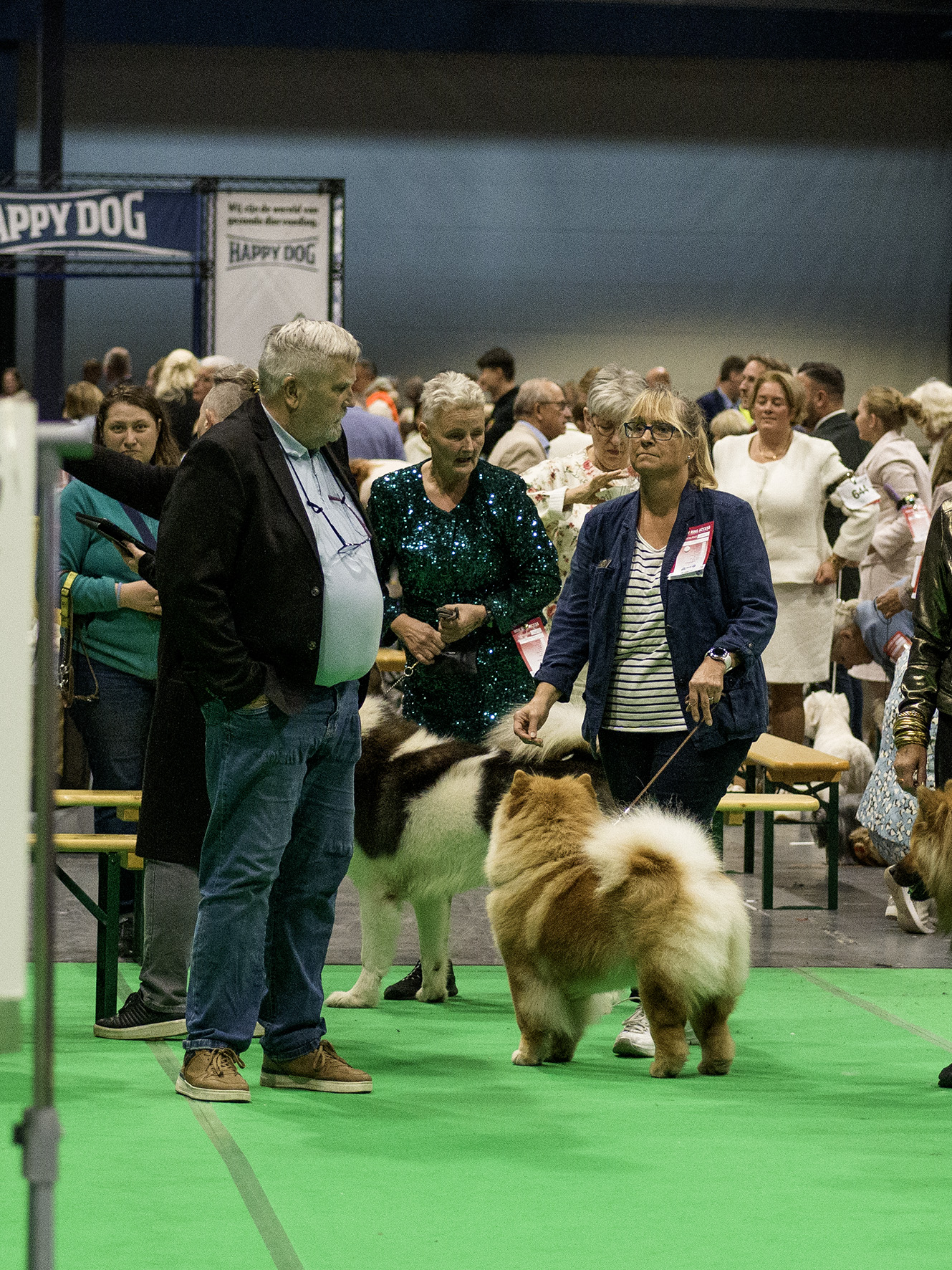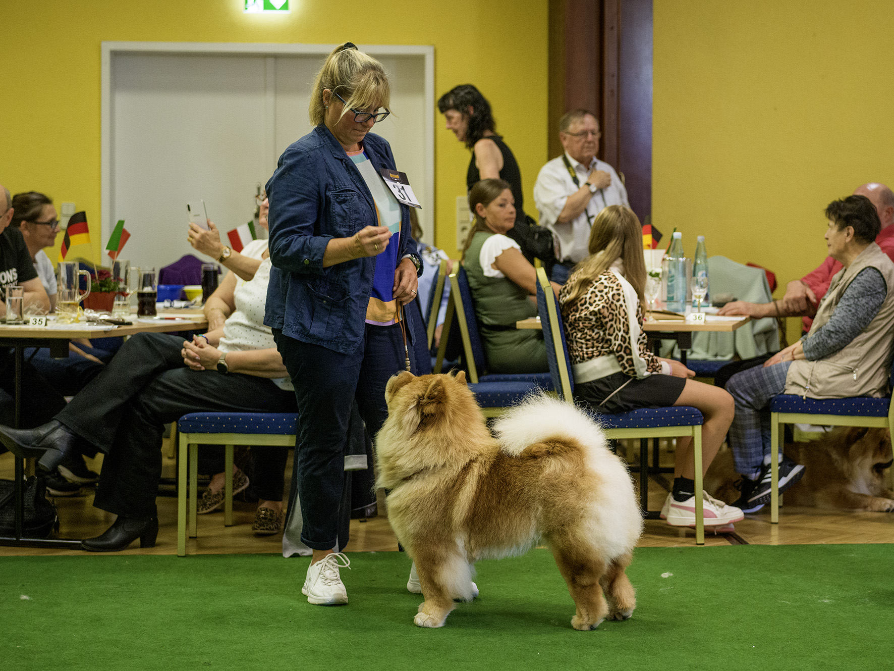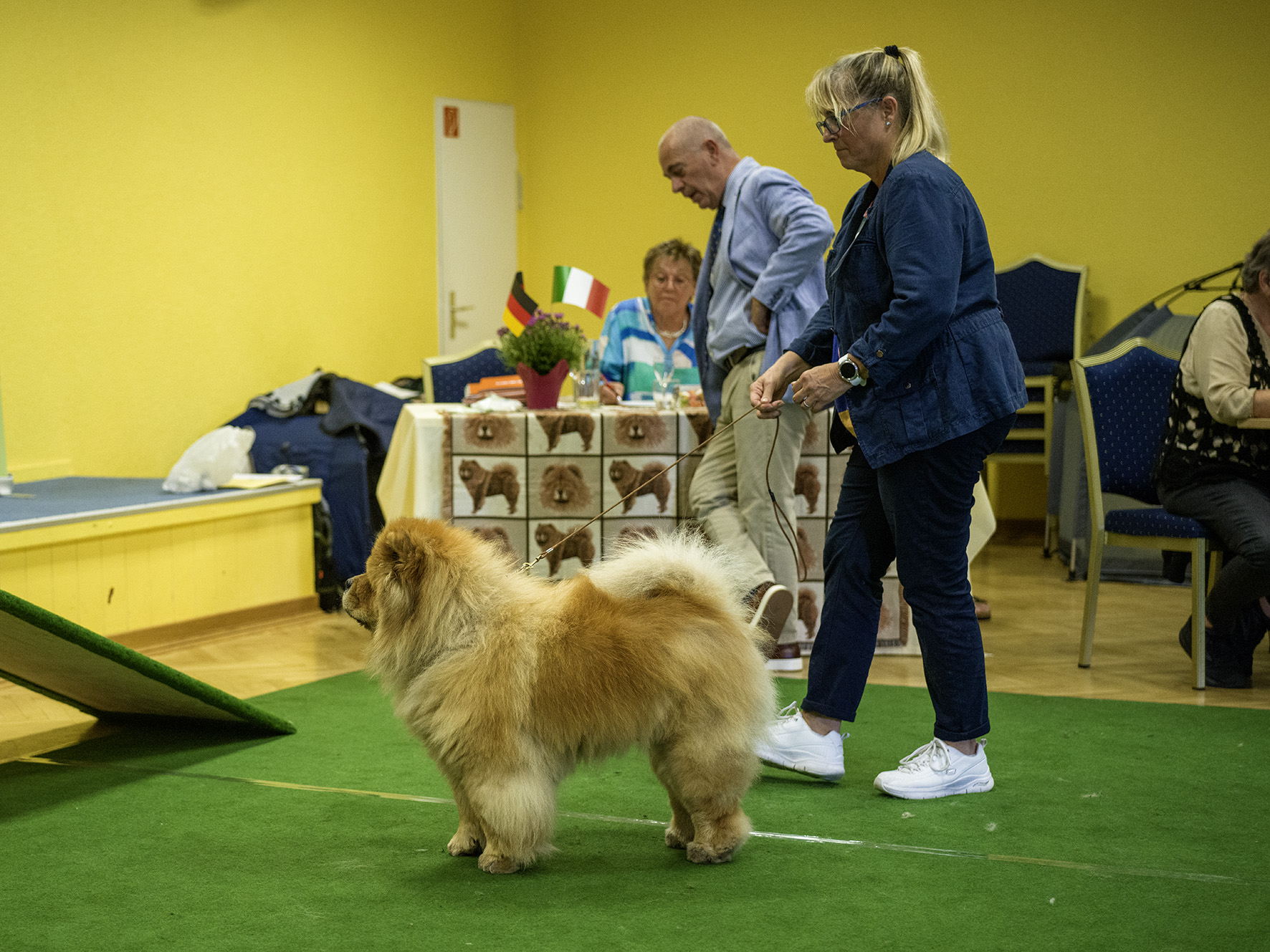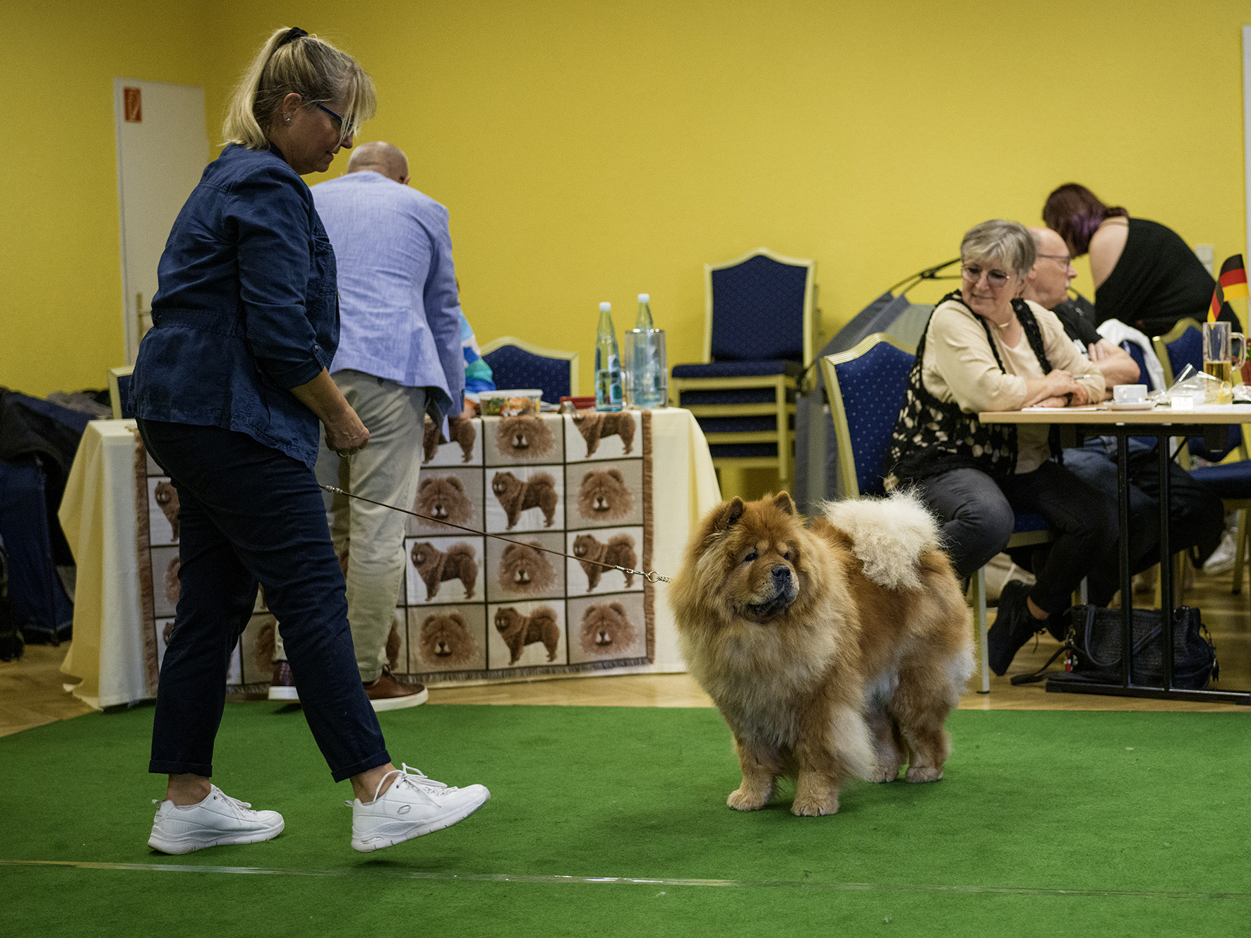 Besonders herausfordernd wird die Aufgabe, wenn es sich bei den ausgestellten Hunden um Chows handelt, die rassetypisch lieber ihren eigenen Kopf durchsetzen und es manchmal gar nicht so richtig einsehen wollen, dass sie immer bis fast zum Ende der Veranstaltung warten müssen, bis sie denn dann in den Ring dürfen.