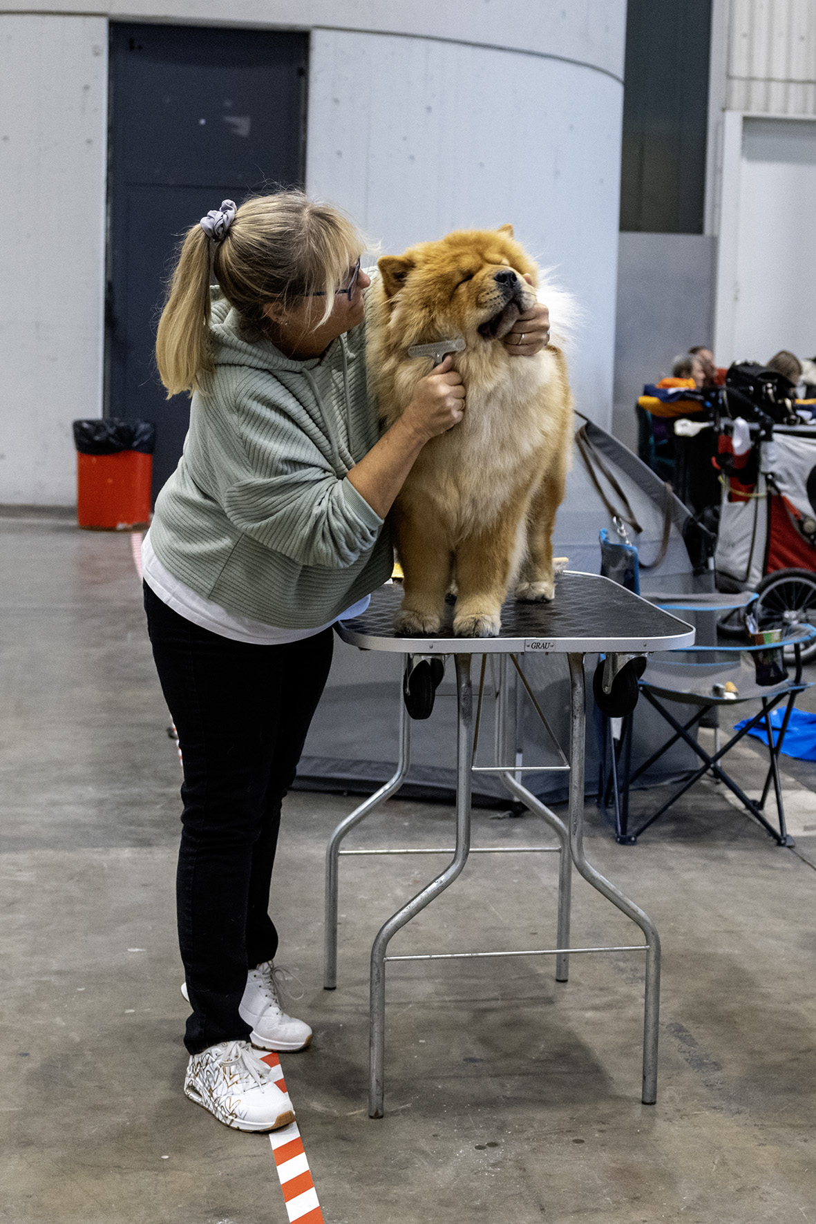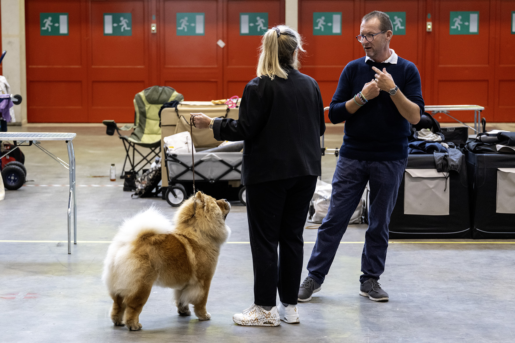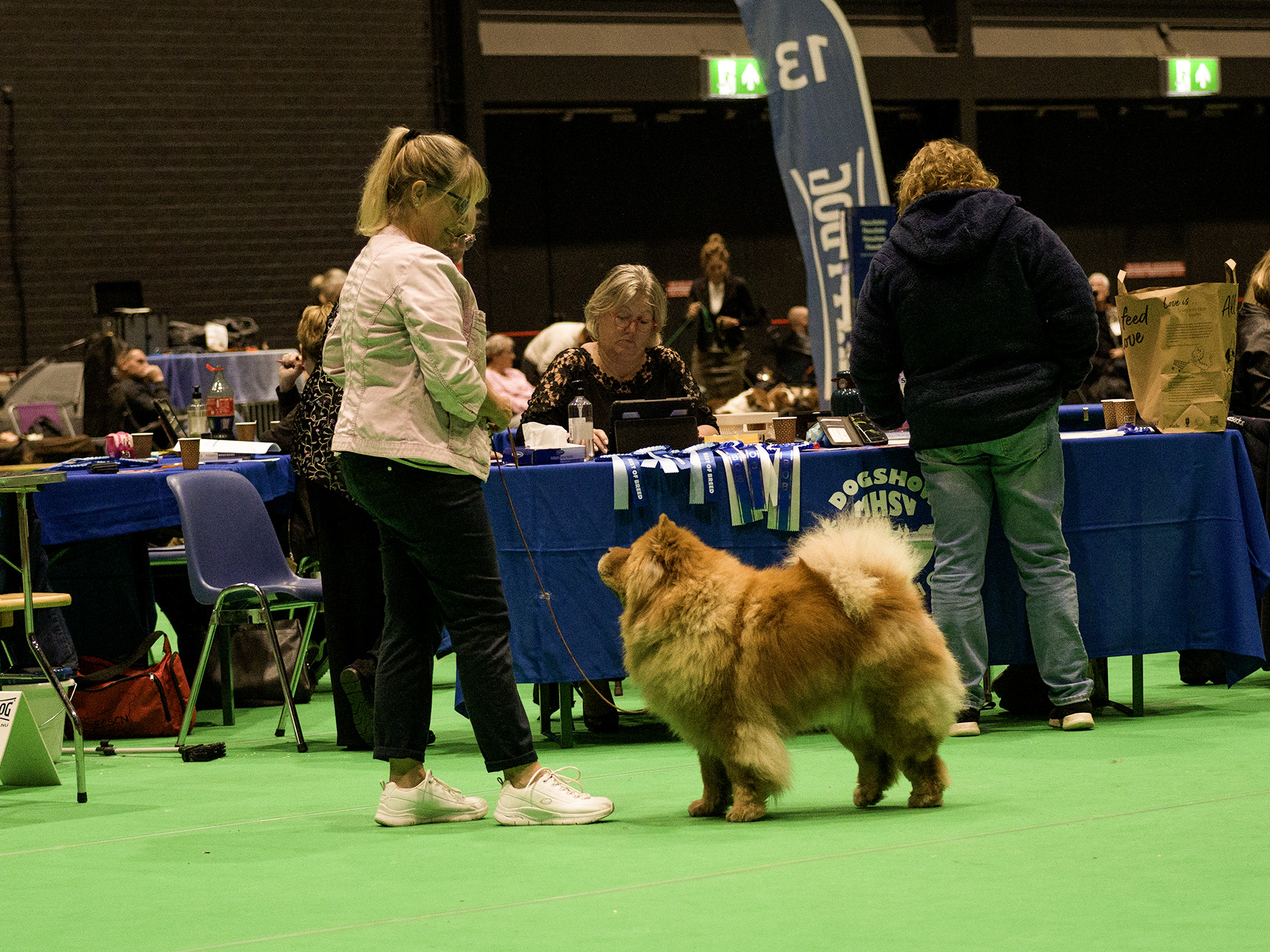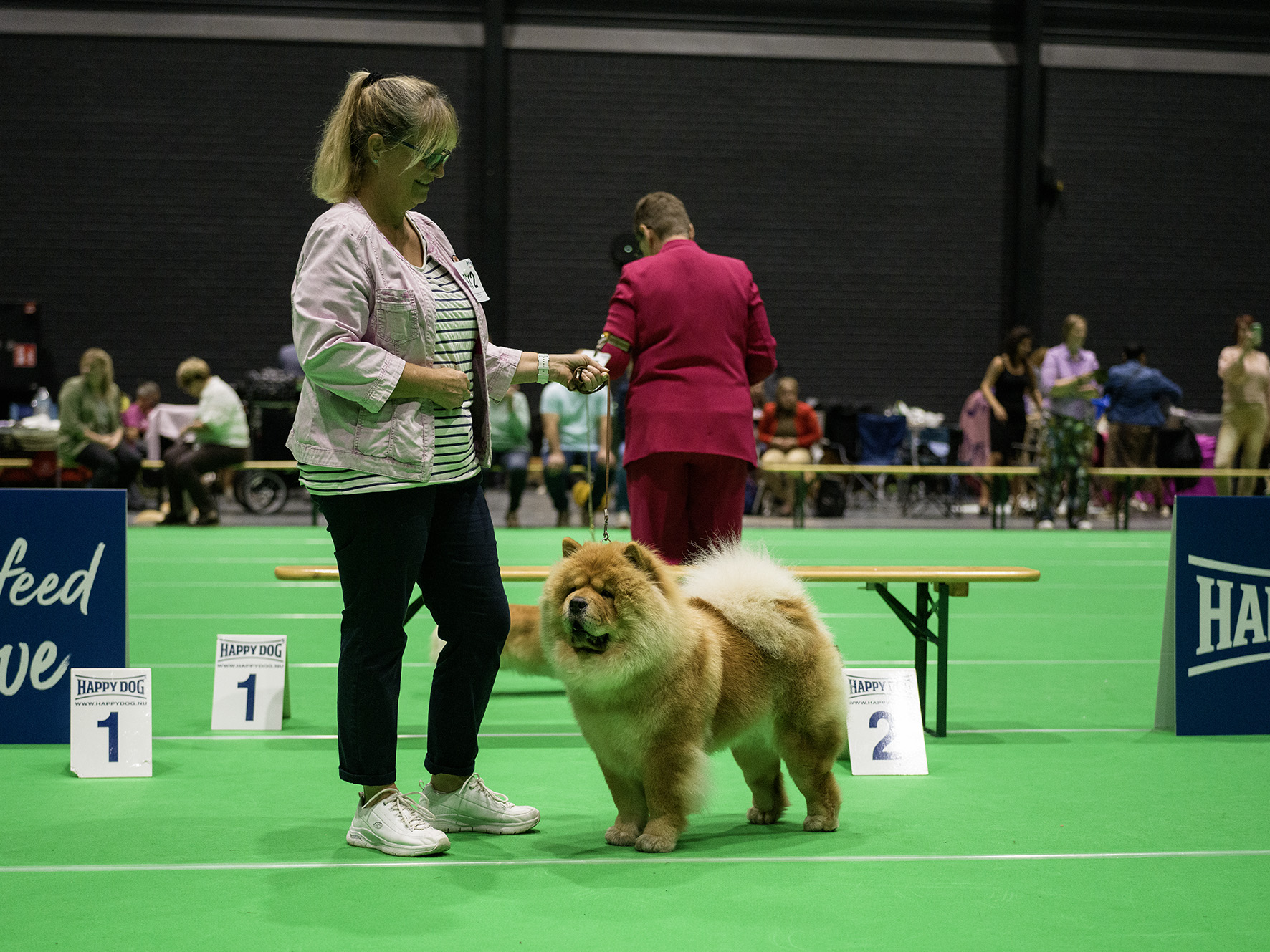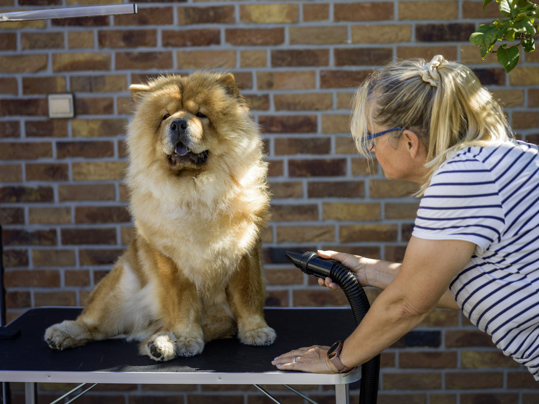 Besonders herausfordernd wird die Aufgabe, wenn es sich bei den ausgestellten Hunden um Chows handelt, die rassetypisch lieber ihren eigenen Kopf durchsetzen und es manchmal gar nicht so richtig einsehen wollen, dass sie immer bis fast zum Ende der Veranstaltung warten müssen, bis sie denn dann in den Ring dürfen.