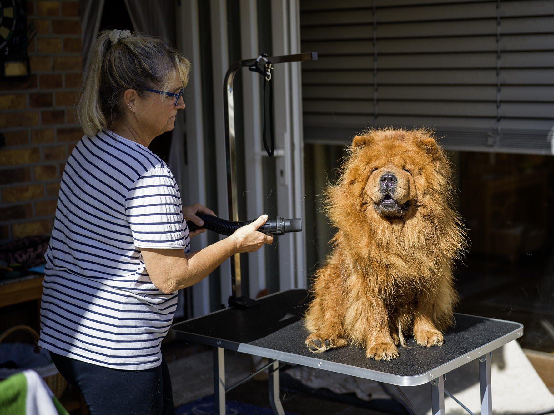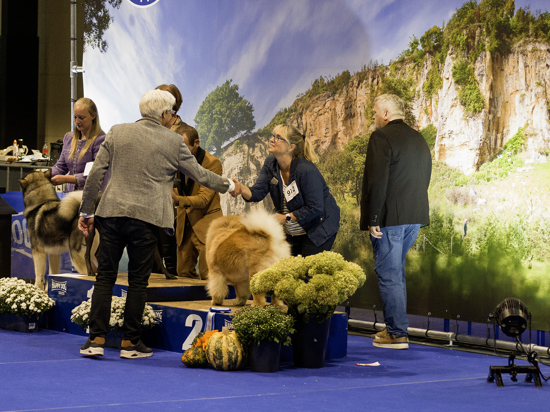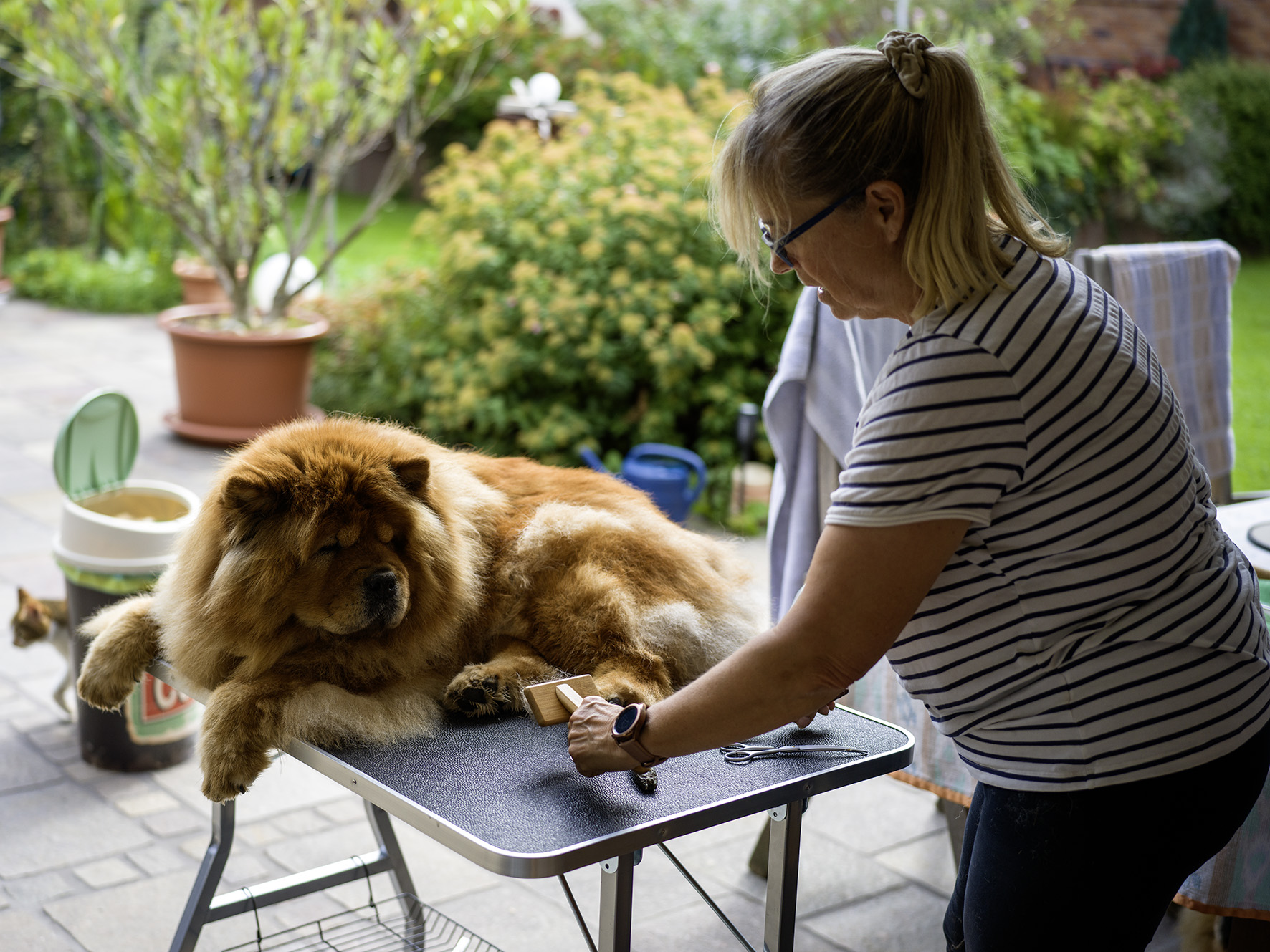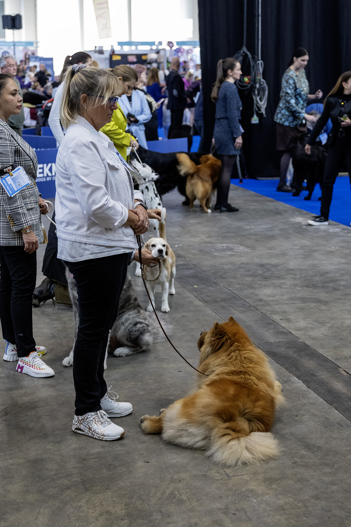 Besonders herausfordernd wird die Aufgabe, wenn es sich bei den ausgestellten Hunden um Chows handelt, die rassetypisch lieber ihren eigenen Kopf durchsetzen und es manchmal gar nicht so richtig einsehen wollen, dass sie immer bis fast zum Ende der Veranstaltung warten müssen, bis sie denn dann in den Ring dürfen.