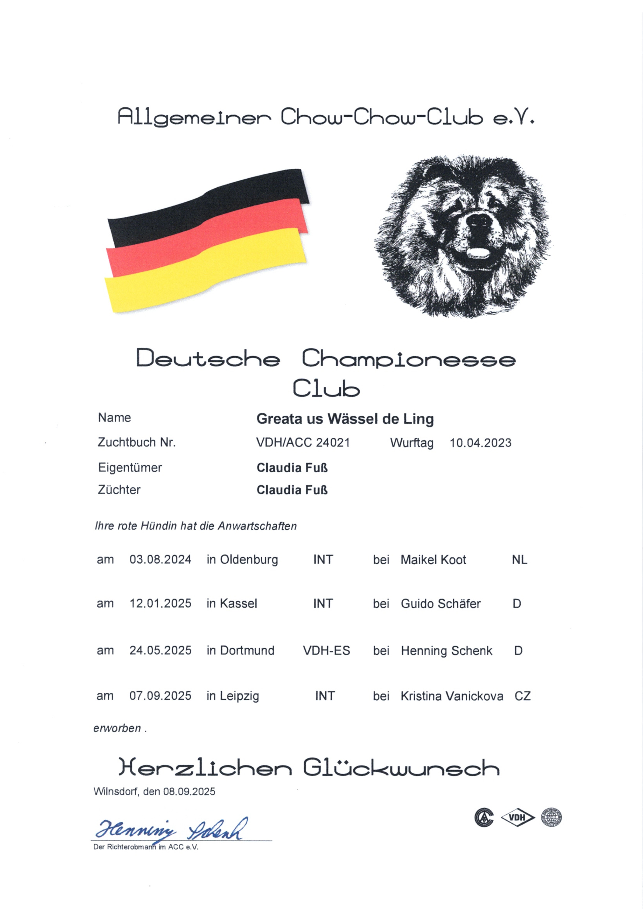 Damit hat Greata us Wässel de Ling zusätzlich alle Voraussetzungen für den VDH-Jahressieger 2025 erfüllt
