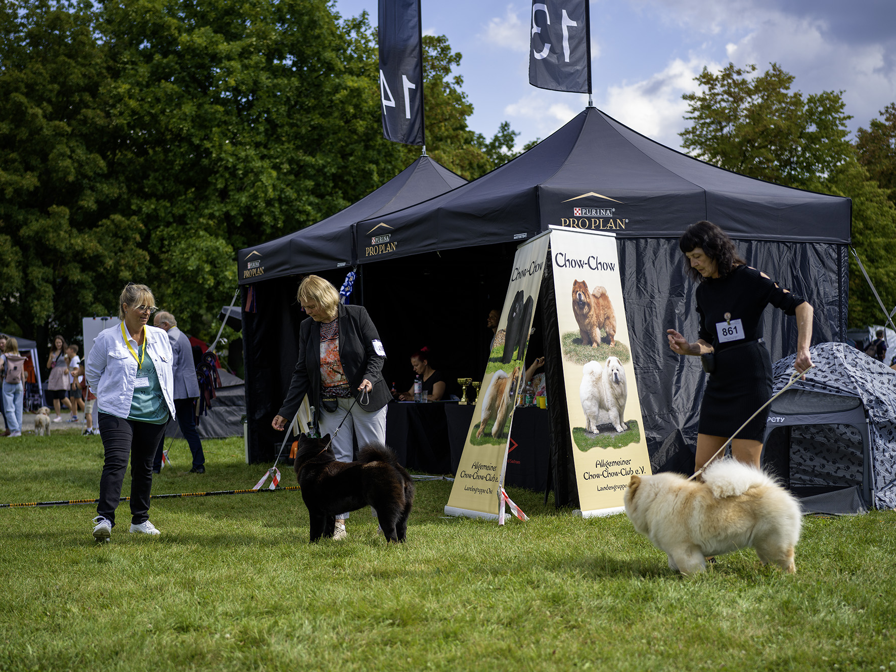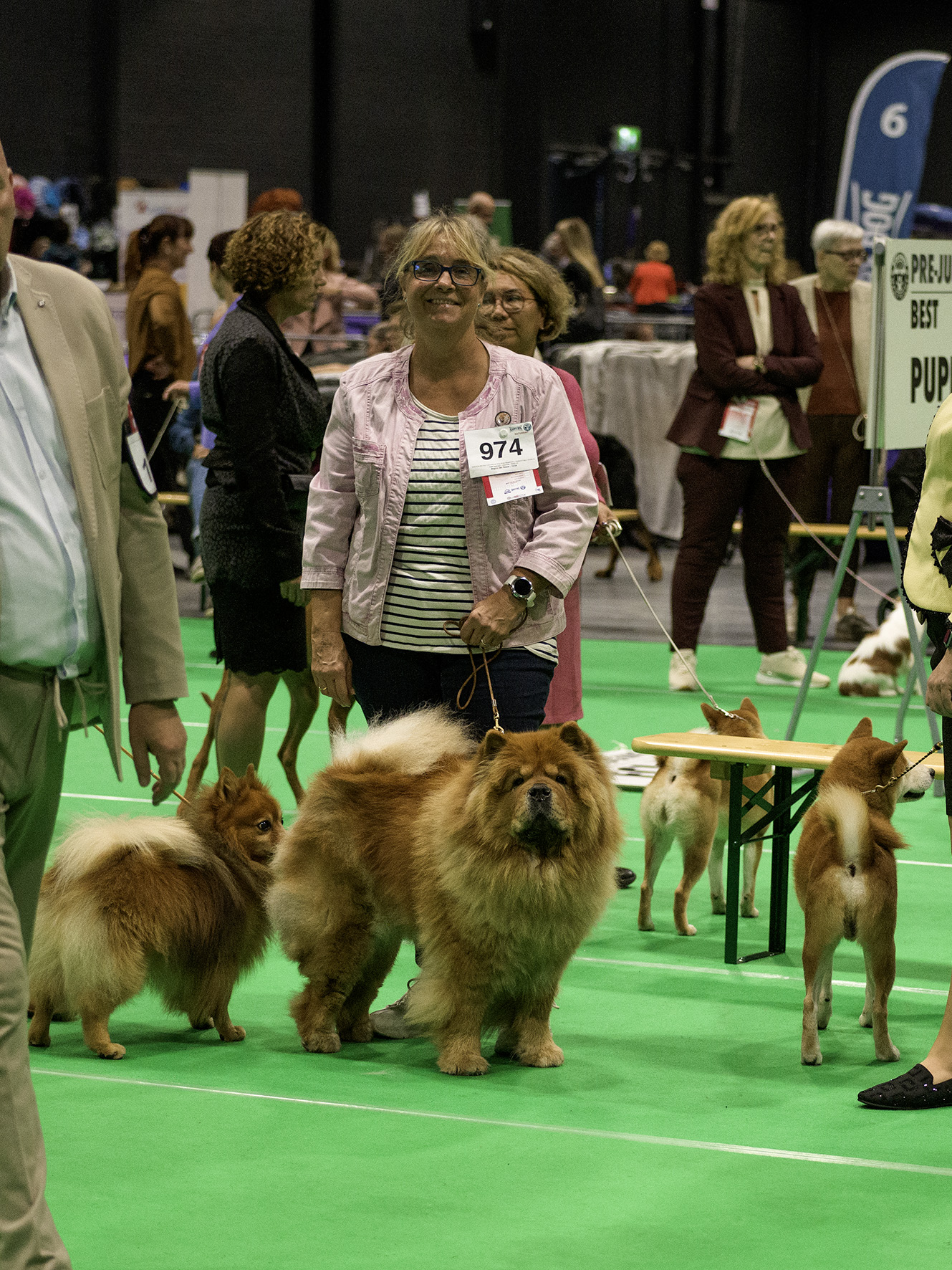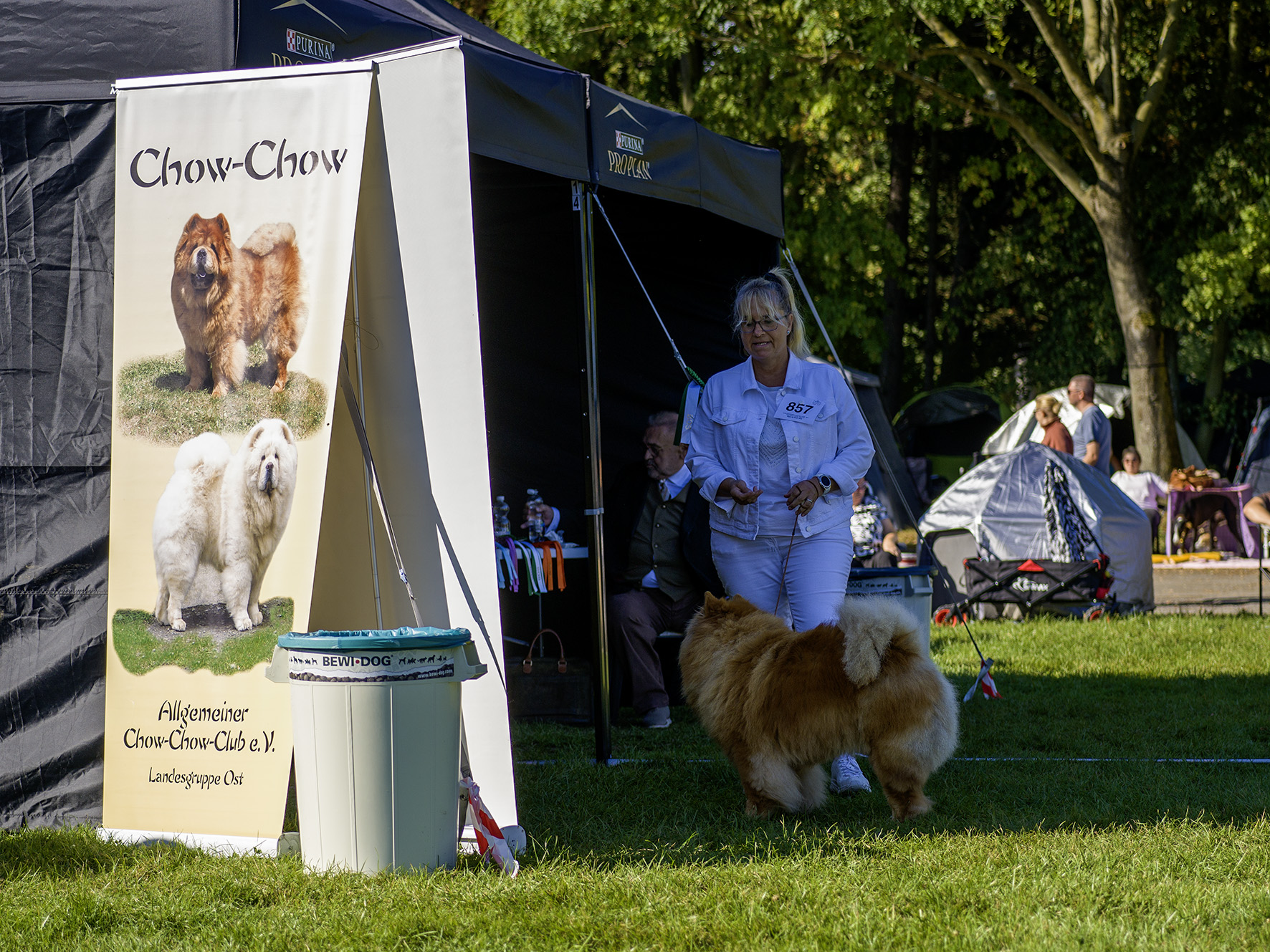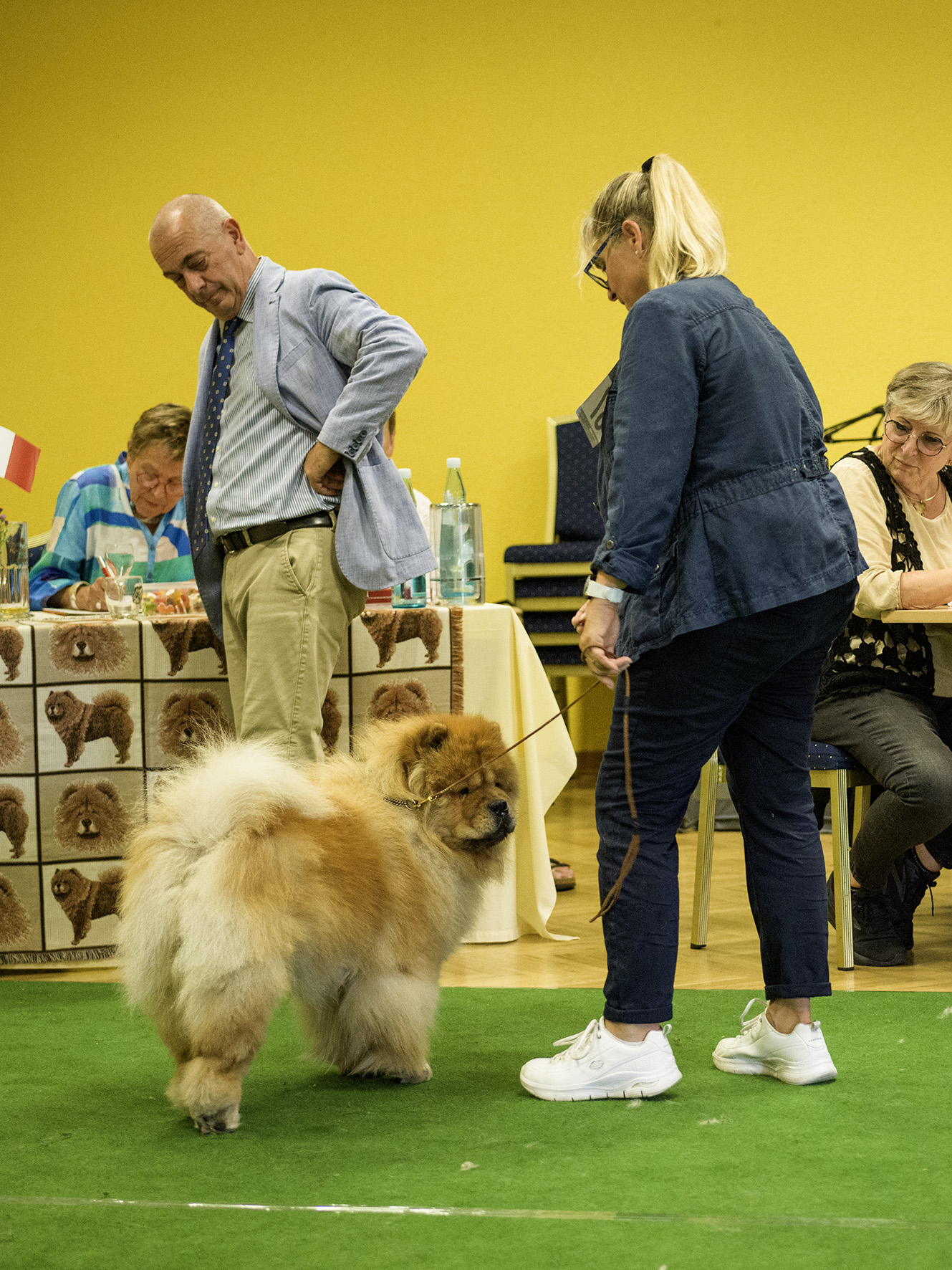 Besonders herausfordernd wird die Aufgabe, wenn es sich bei den ausgestellten Hunden um Chows handelt, die rassetypisch lieber ihren eigenen Kopf durchsetzen und es manchmal gar nicht so richtig einsehen wollen, dass sie immer bis fast zum Ende der Veranstaltung warten müssen, bis sie denn dann in den Ring dürfen.
