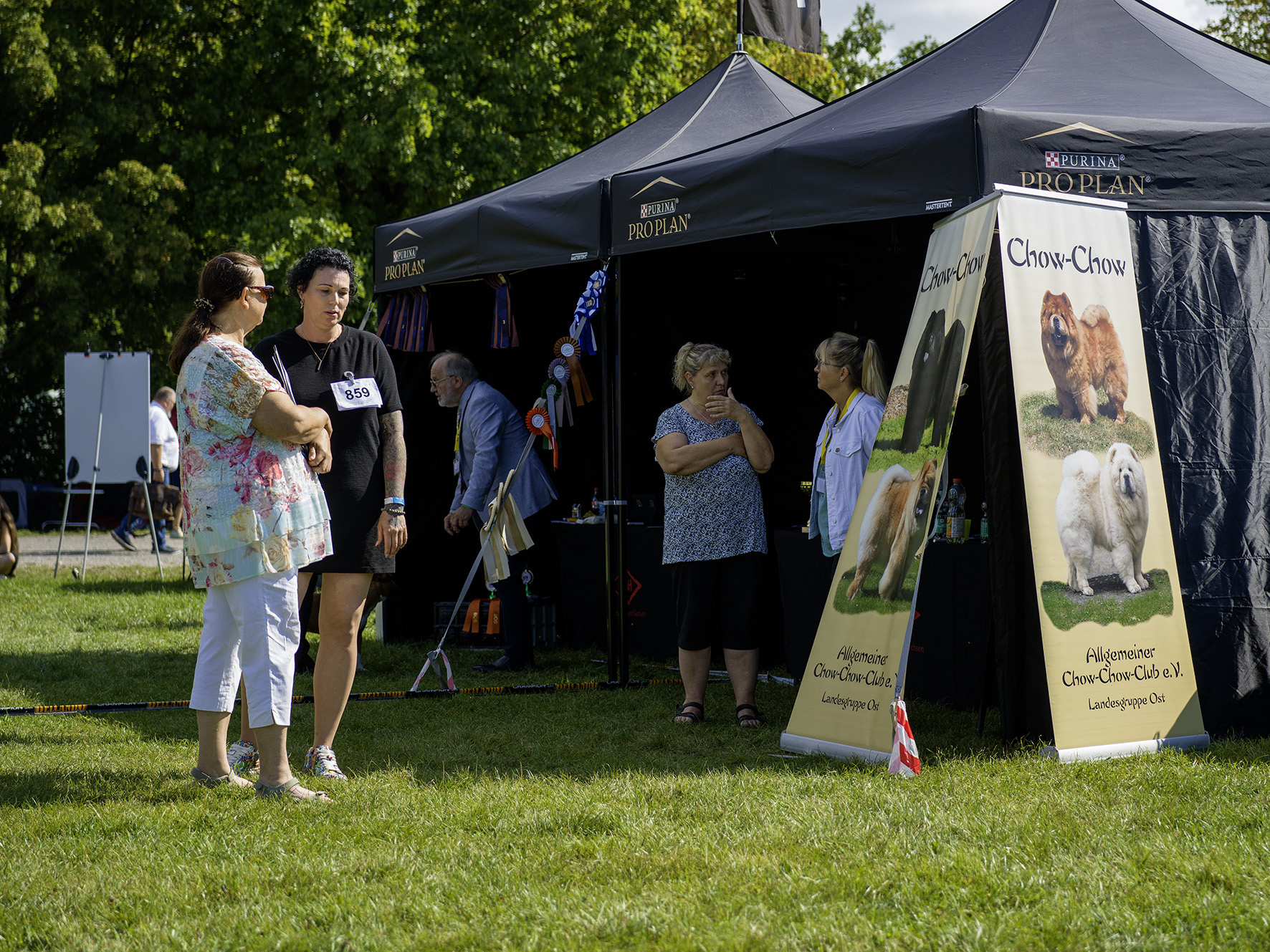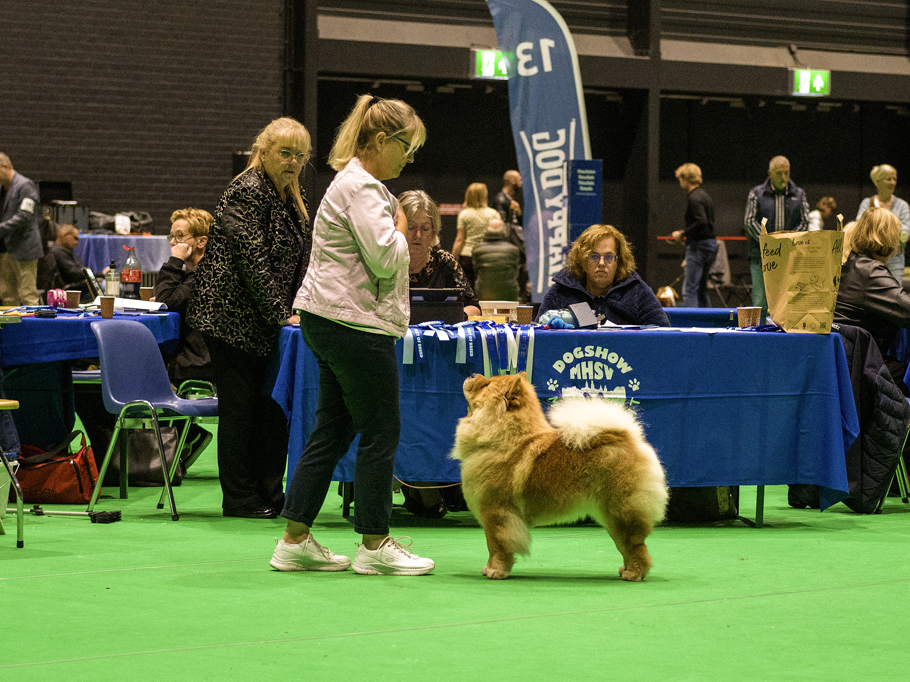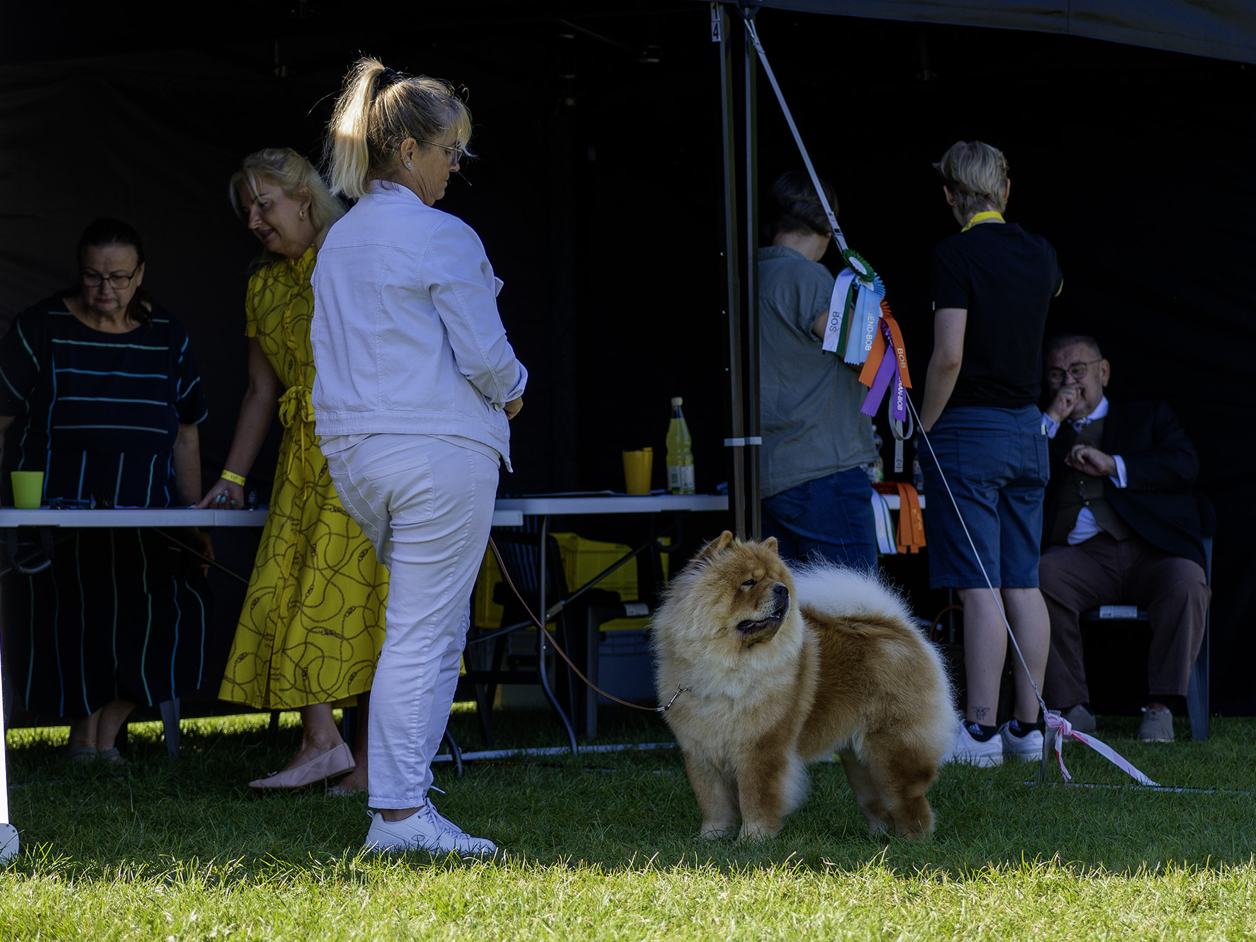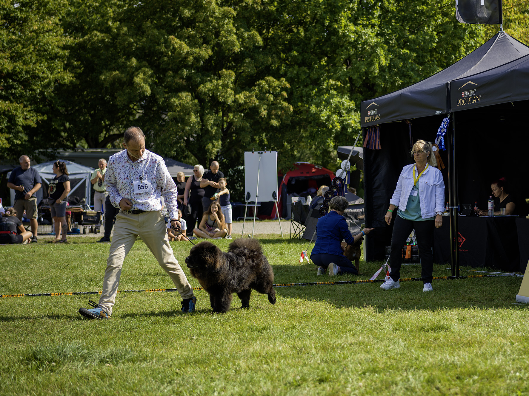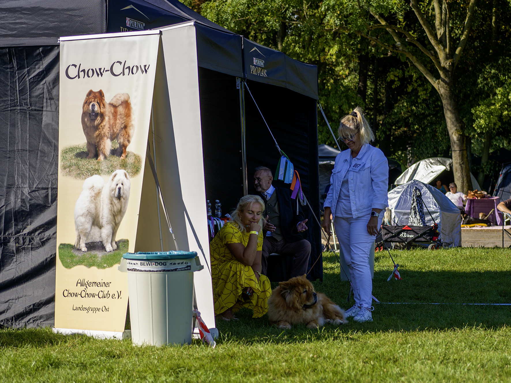 Besonders herausfordernd wird die Aufgabe, wenn es sich bei den ausgestellten Hunden um Chows handelt, die rassetypisch lieber ihren eigenen Kopf durchsetzen und es manchmal gar nicht so richtig einsehen wollen, dass sie immer bis fast zum Ende der Veranstaltung warten müssen, bis sie denn dann in den Ring dürfen.