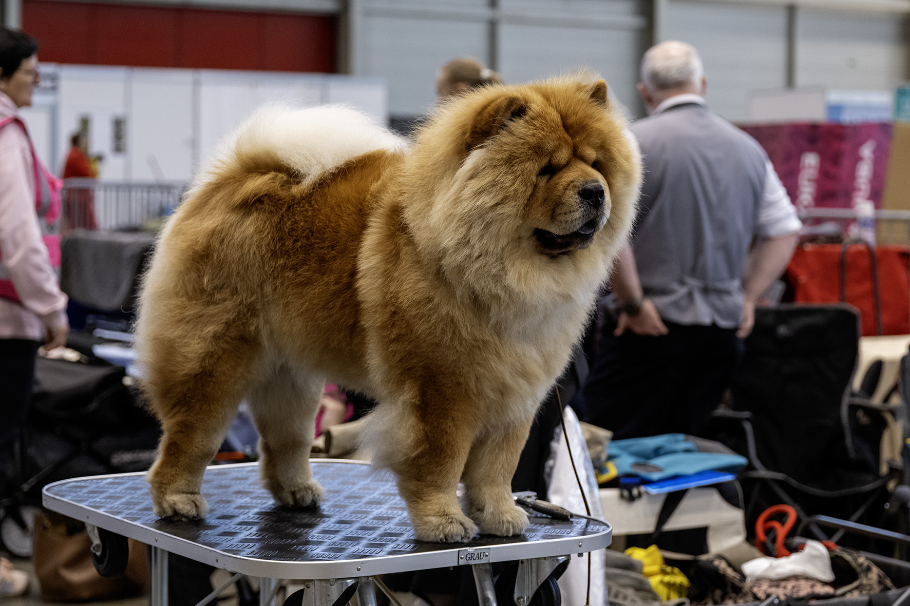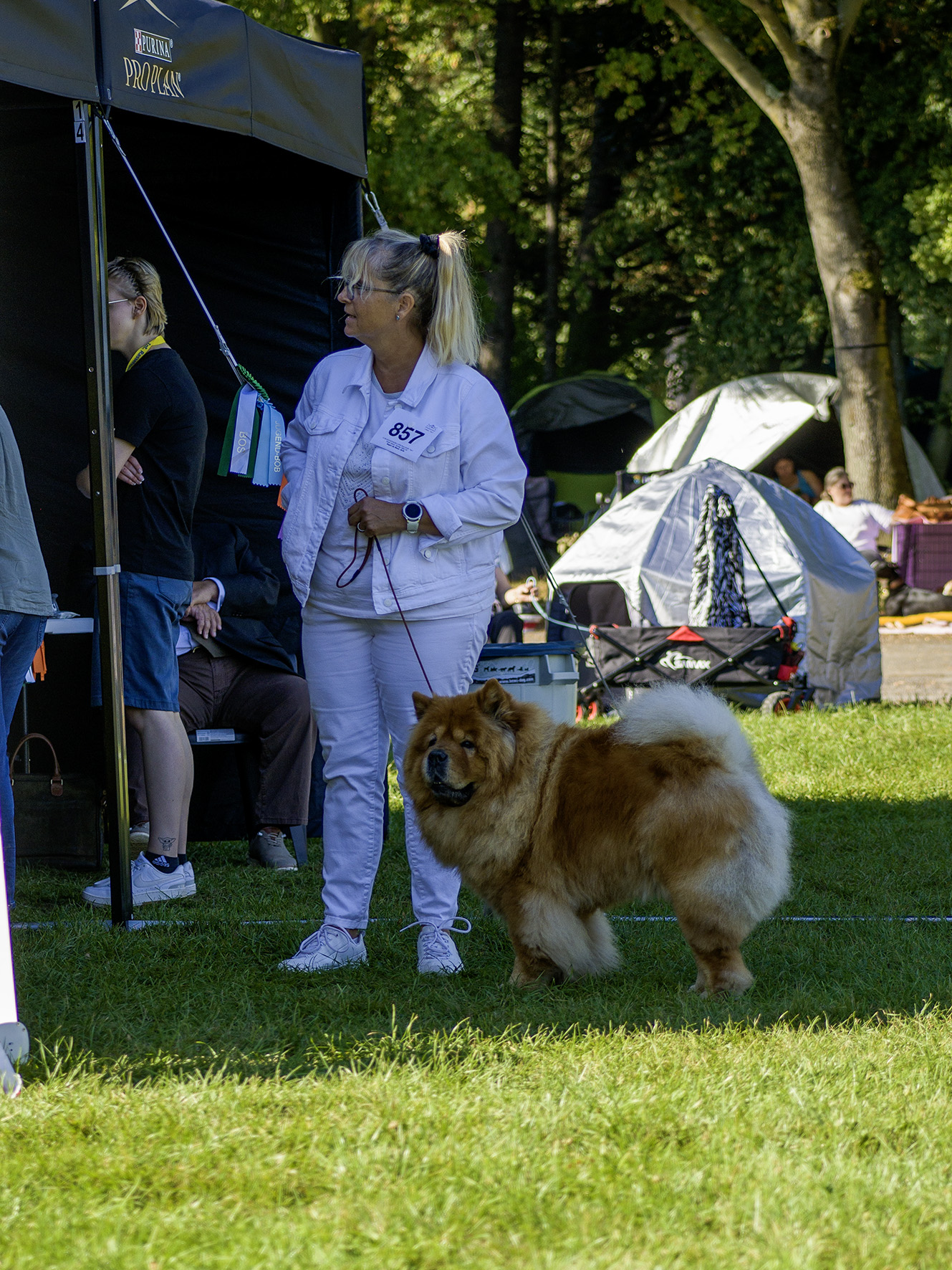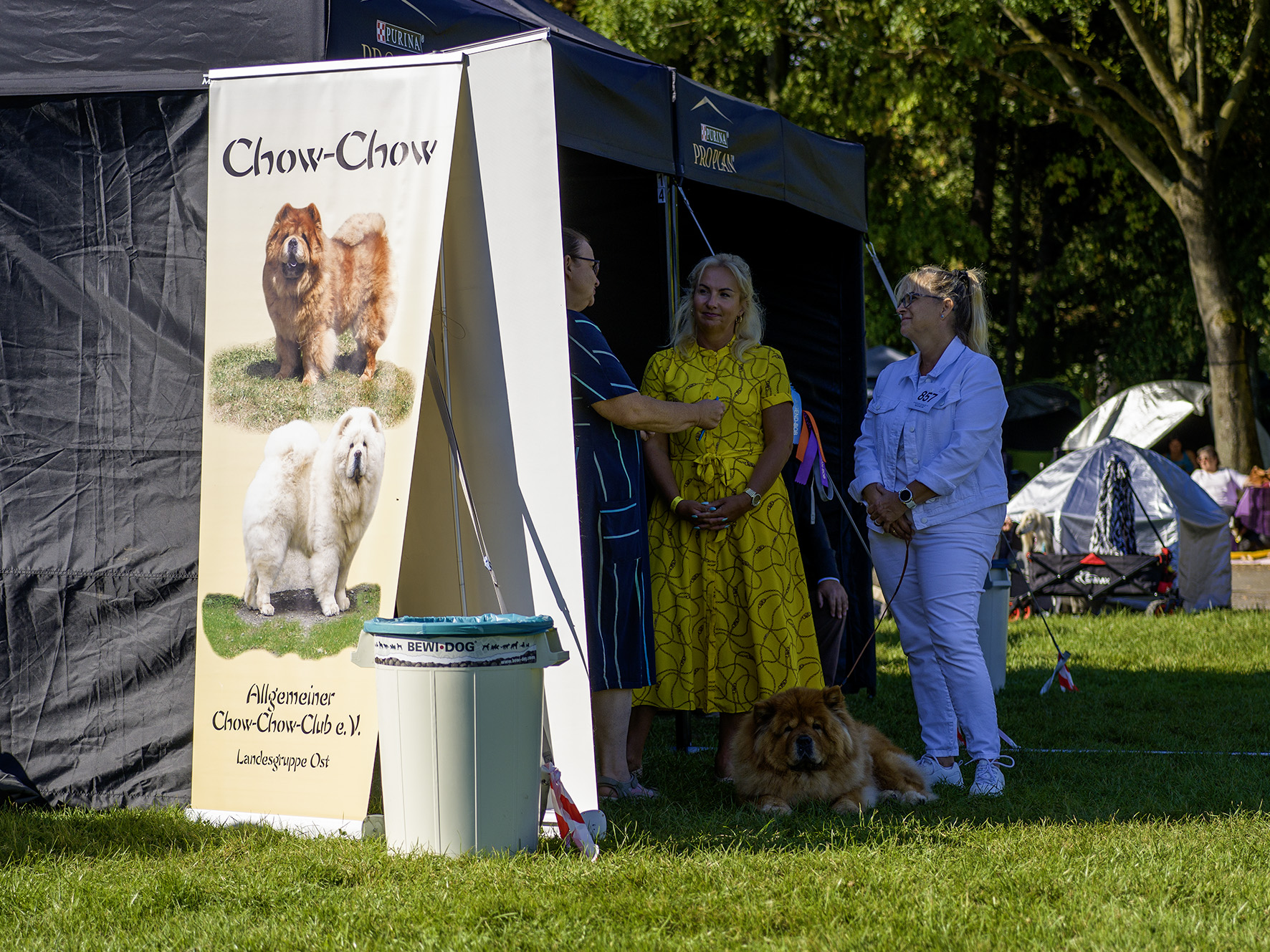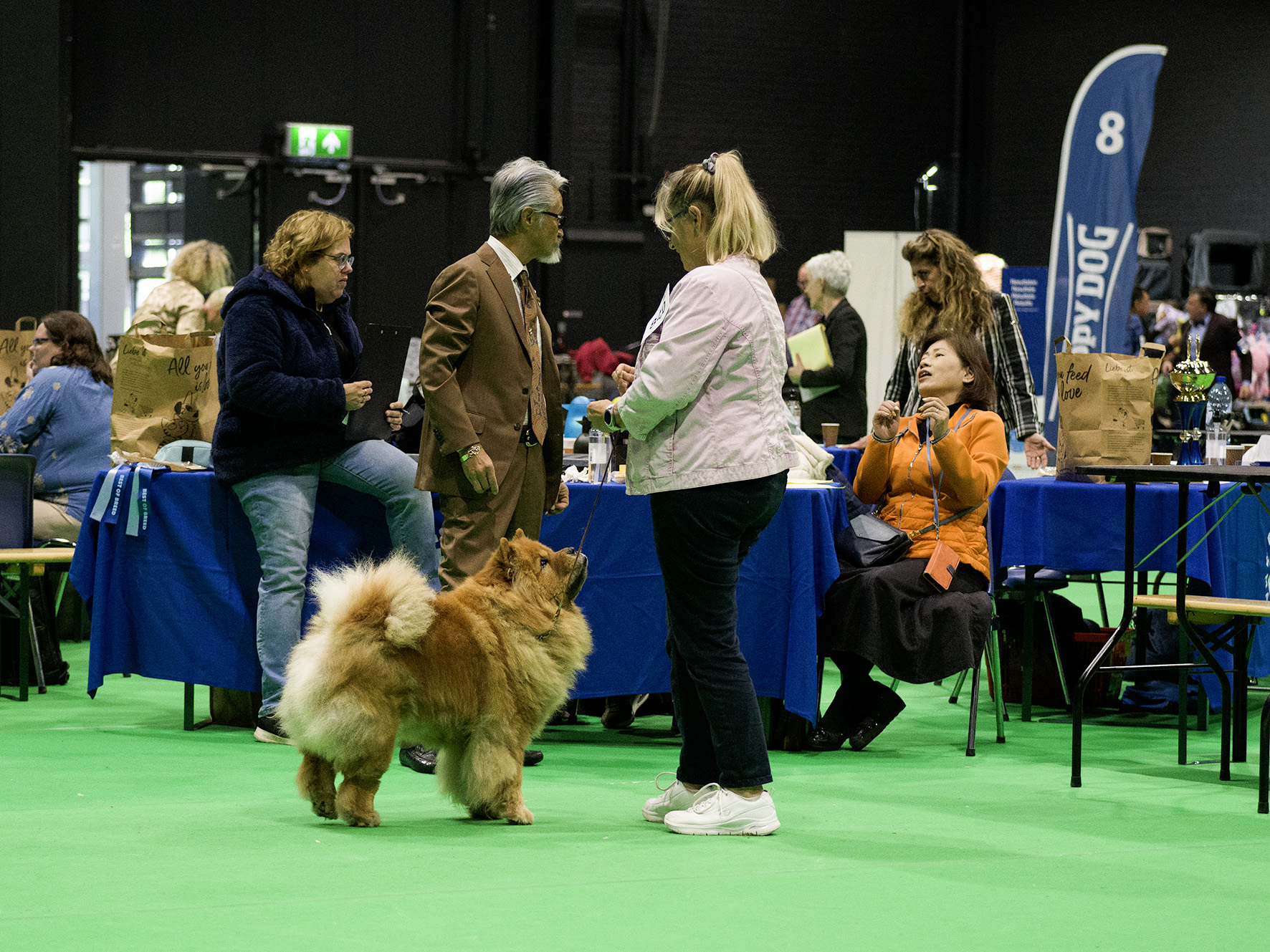 Besonders herausfordernd wird die Aufgabe, wenn es sich bei den ausgestellten Hunden um Chows handelt, die rassetypisch lieber ihren eigenen Kopf durchsetzen und es manchmal gar nicht so richtig einsehen wollen, dass sie immer bis fast zum Ende der Veranstaltung warten müssen, bis sie denn dann in den Ring dürfen.