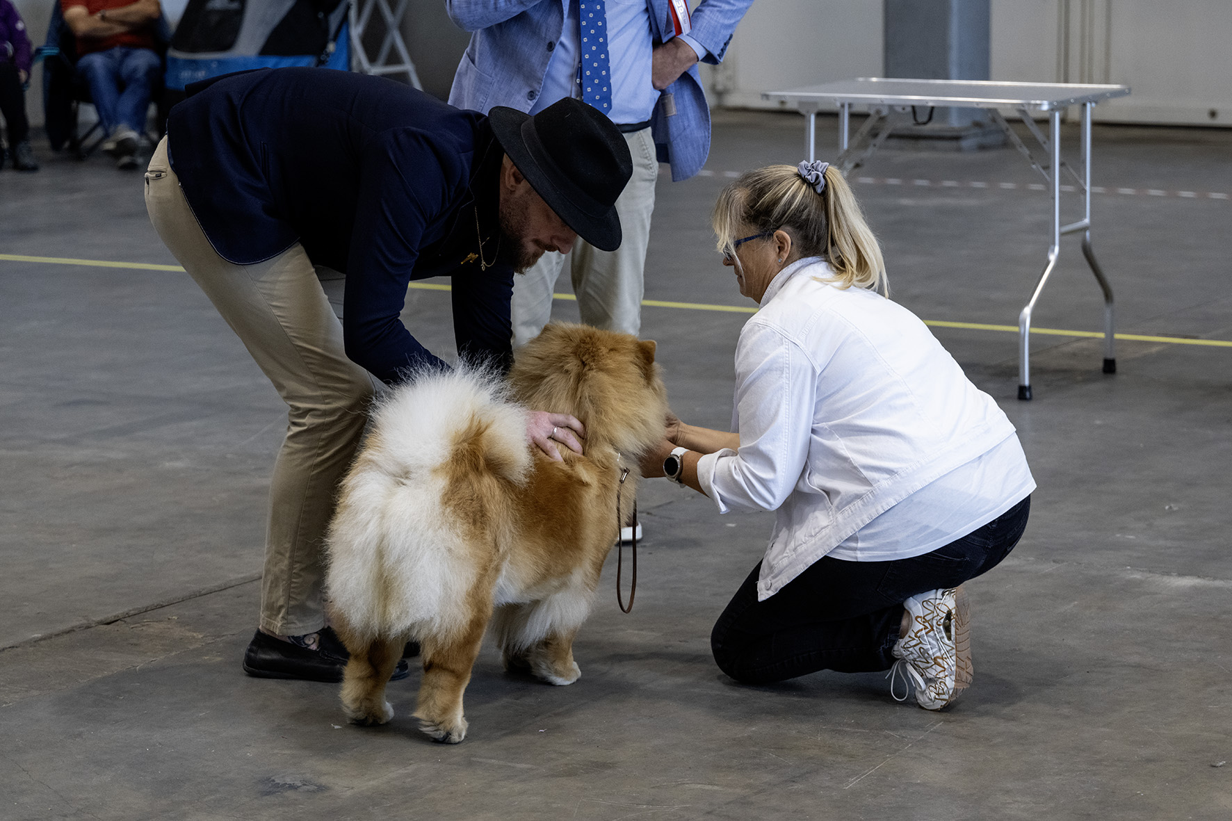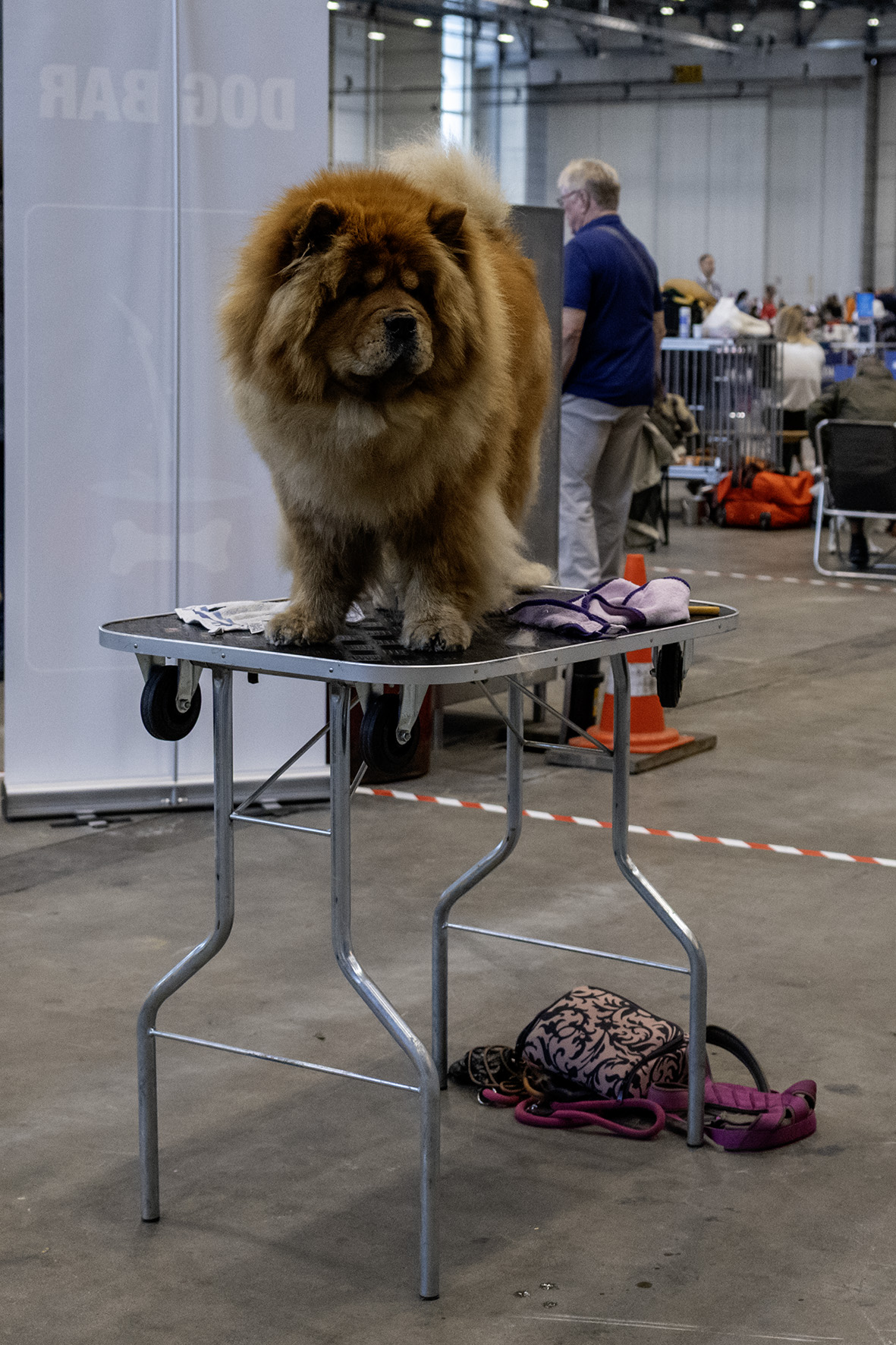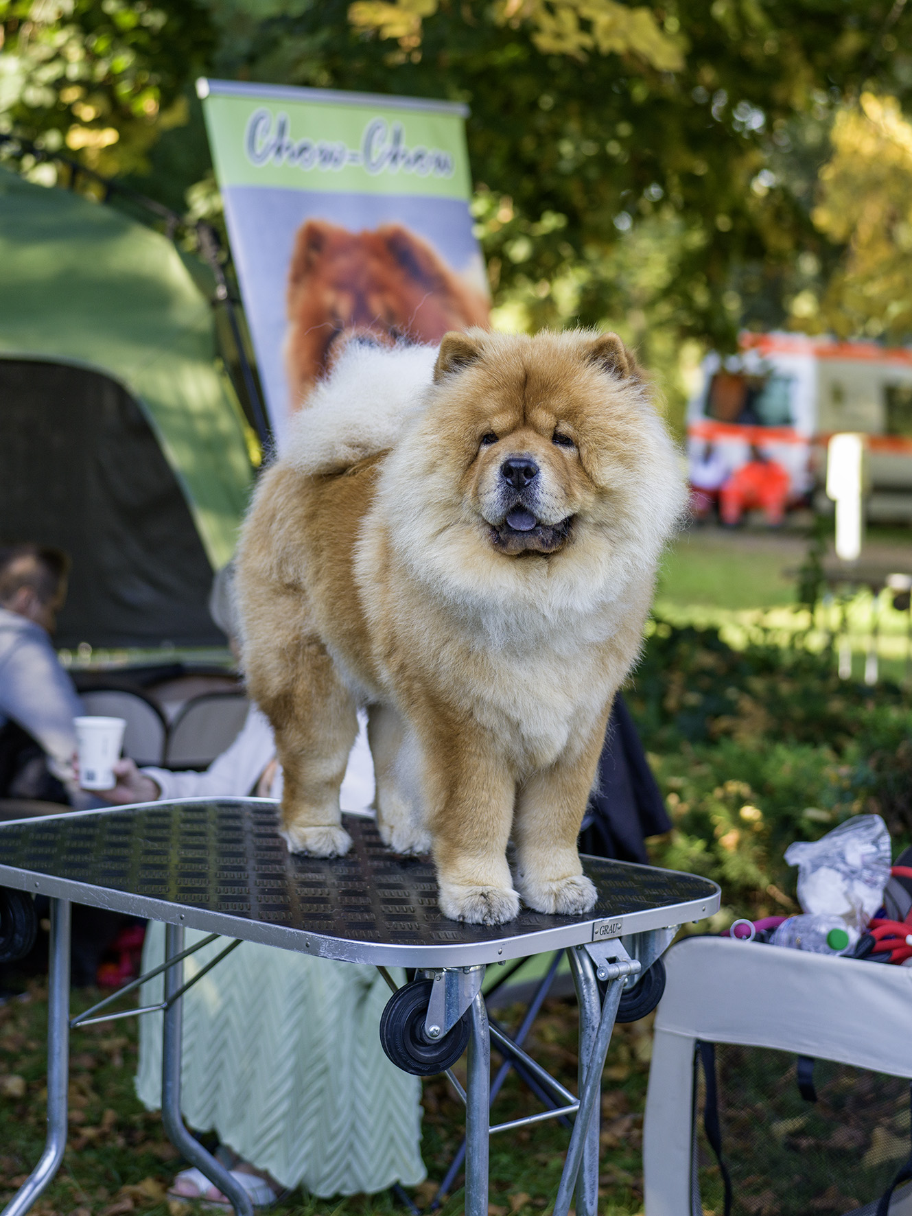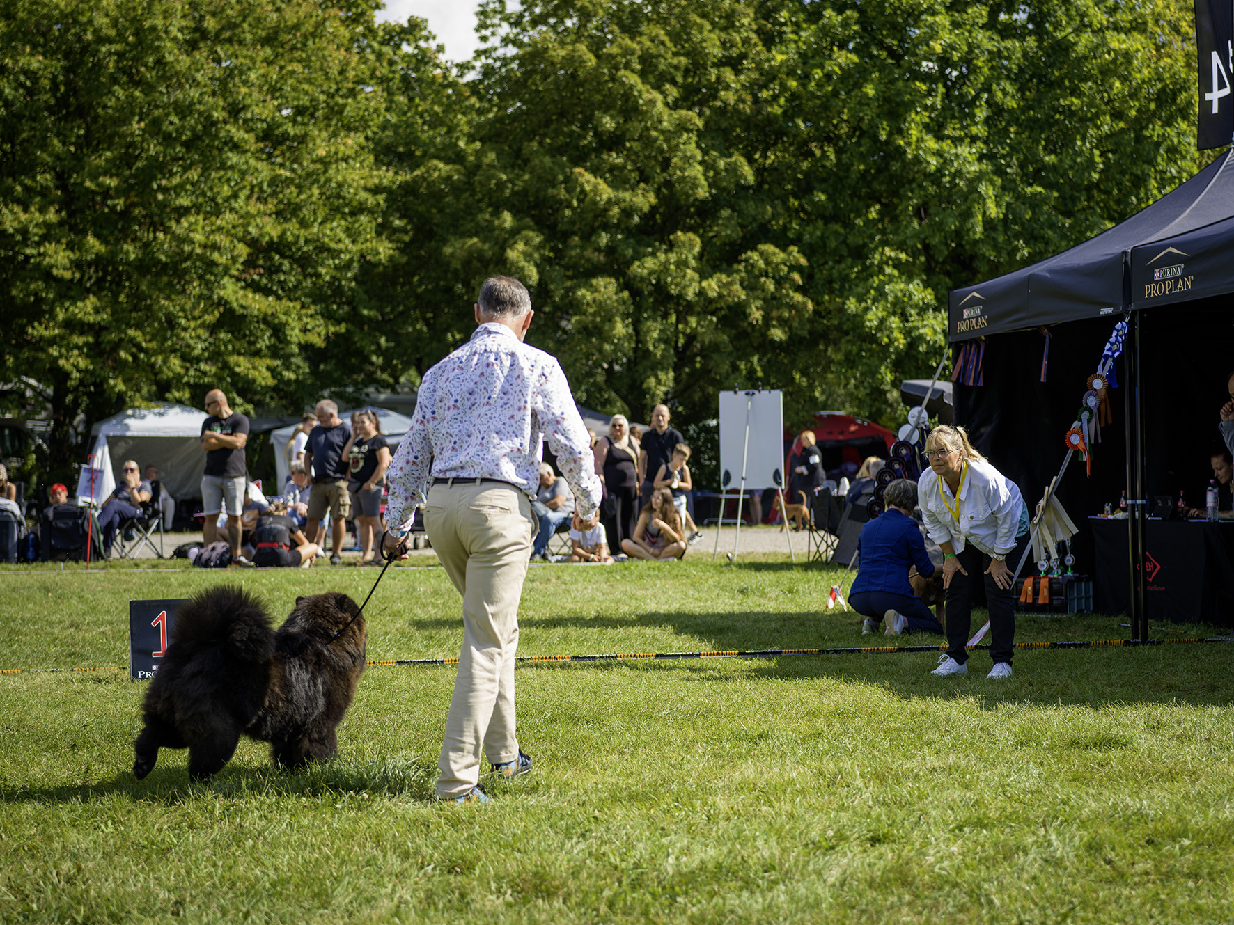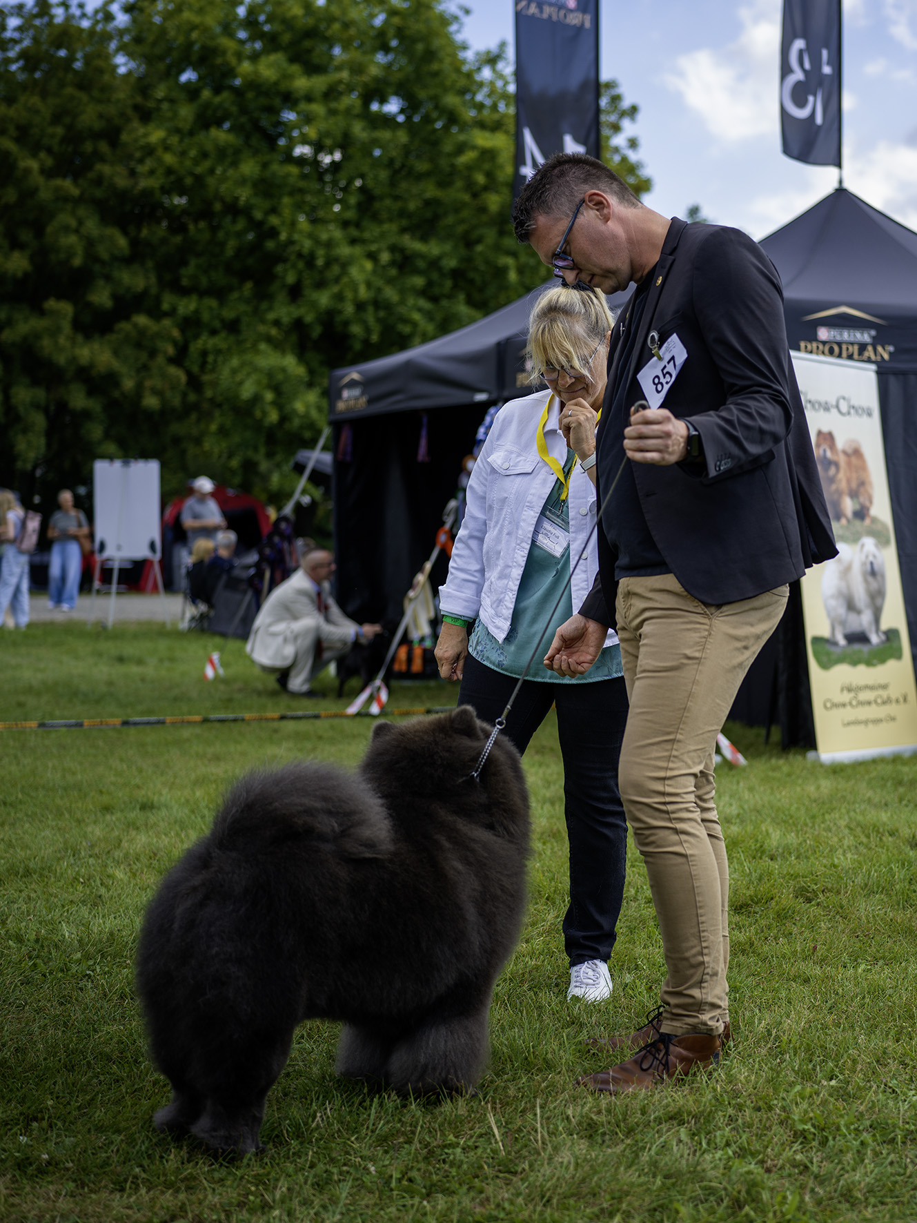 Besonders herausfordernd wird die Aufgabe, wenn es sich bei den ausgestellten Hunden um Chows handelt, die rassetypisch lieber ihren eigenen Kopf durchsetzen und es manchmal gar nicht so richtig einsehen wollen, dass sie immer bis fast zum Ende der Veranstaltung warten müssen, bis sie denn dann in den Ring dürfen.