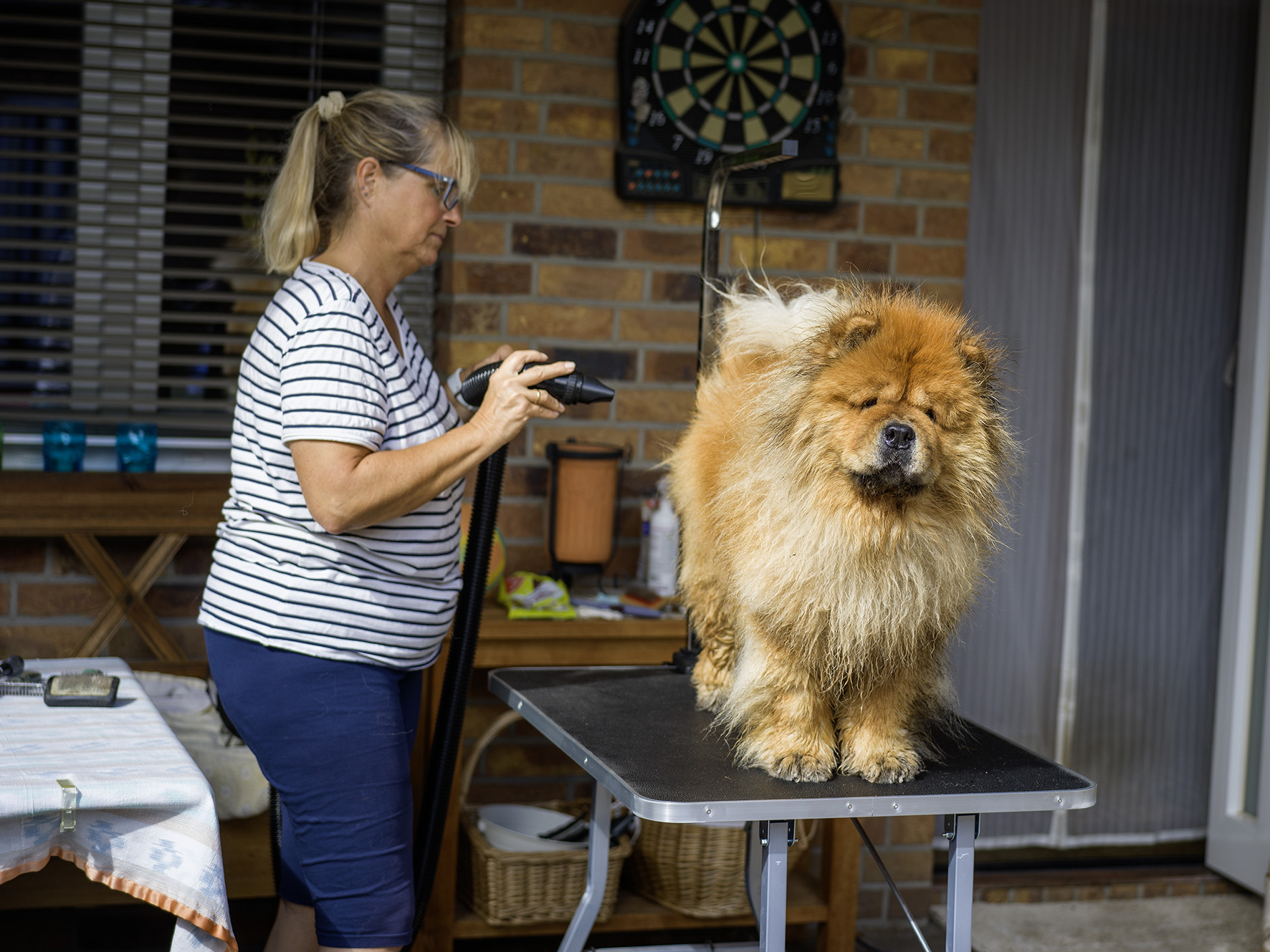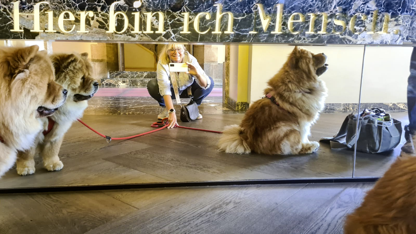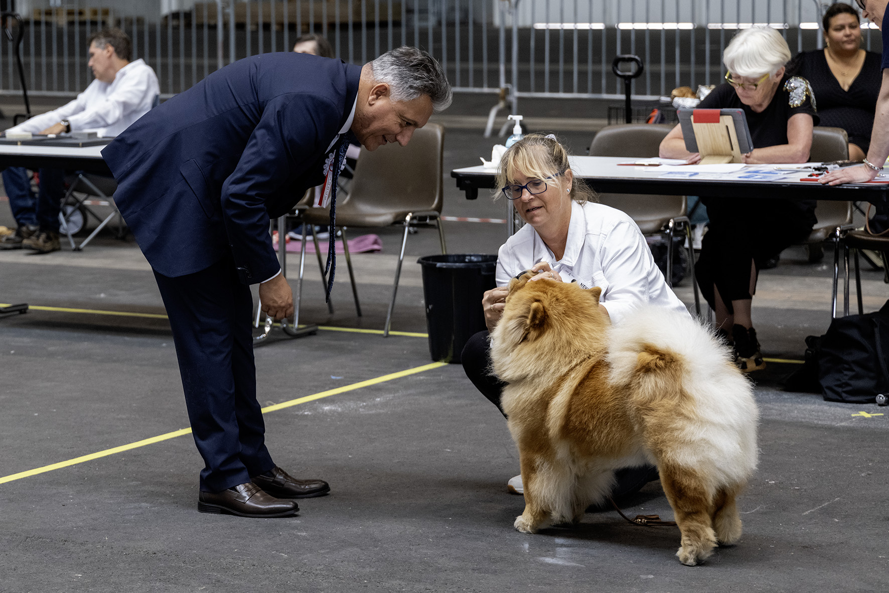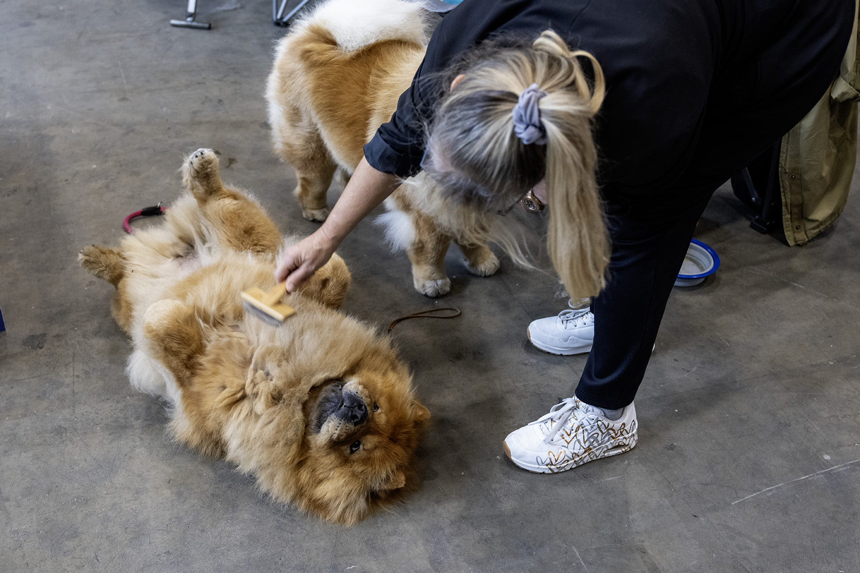 Besonders herausfordernd wird die Aufgabe, wenn es sich bei den ausgestellten Hunden um Chows handelt, die rassetypisch lieber ihren eigenen Kopf durchsetzen und es manchmal gar nicht so richtig einsehen wollen, dass sie immer bis fast zum Ende der Veranstaltung warten müssen, bis sie denn dann in den Ring dürfen.